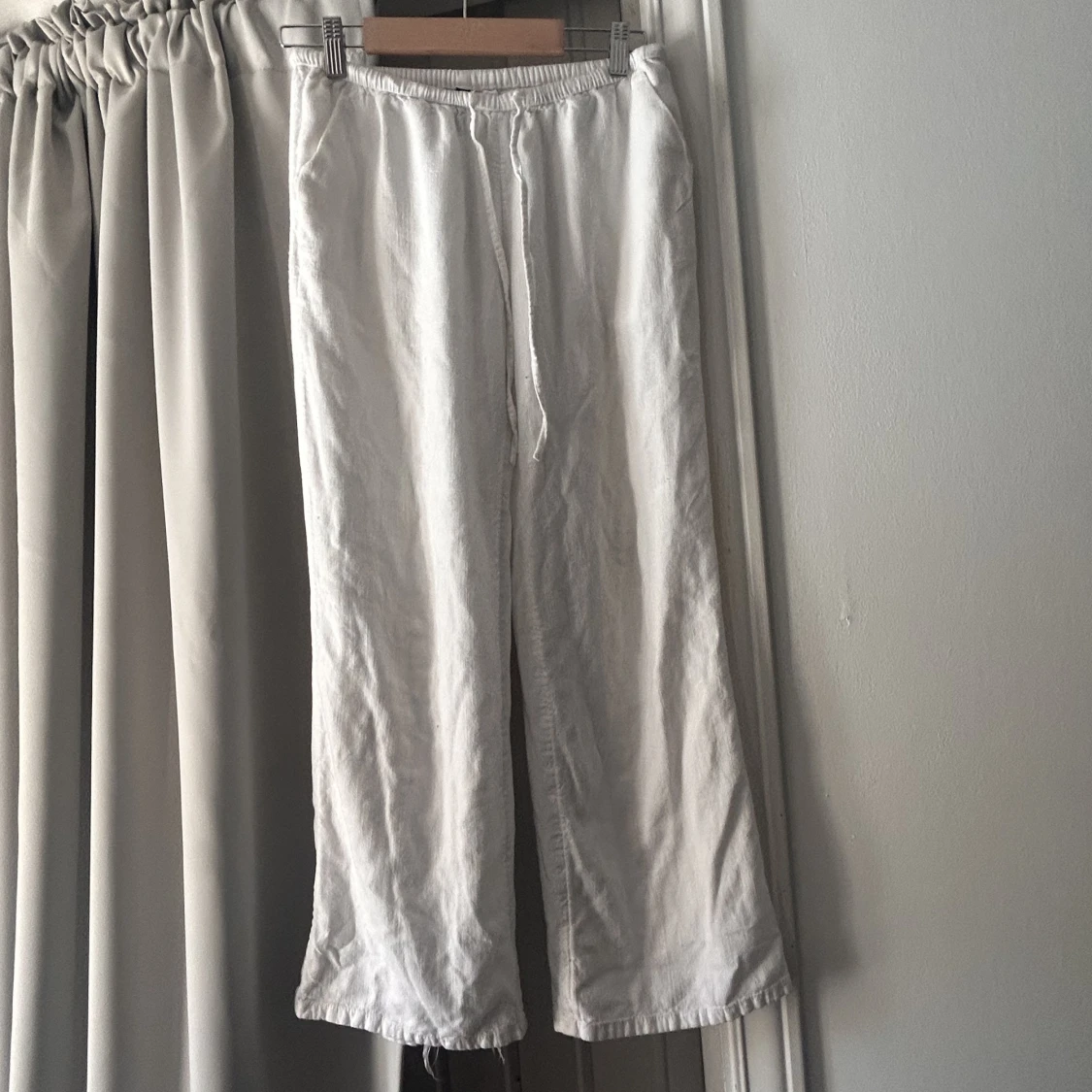 Säljer ett par superfina linnebyxor från h&m som jag inte använder eftersom dem är för små. (På baksidan längst ner är det slitet)