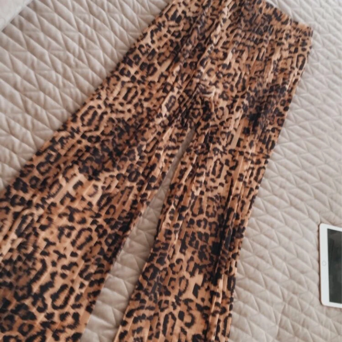 Plisserade byxor med leoprint. Aldrig använda. Strl 32