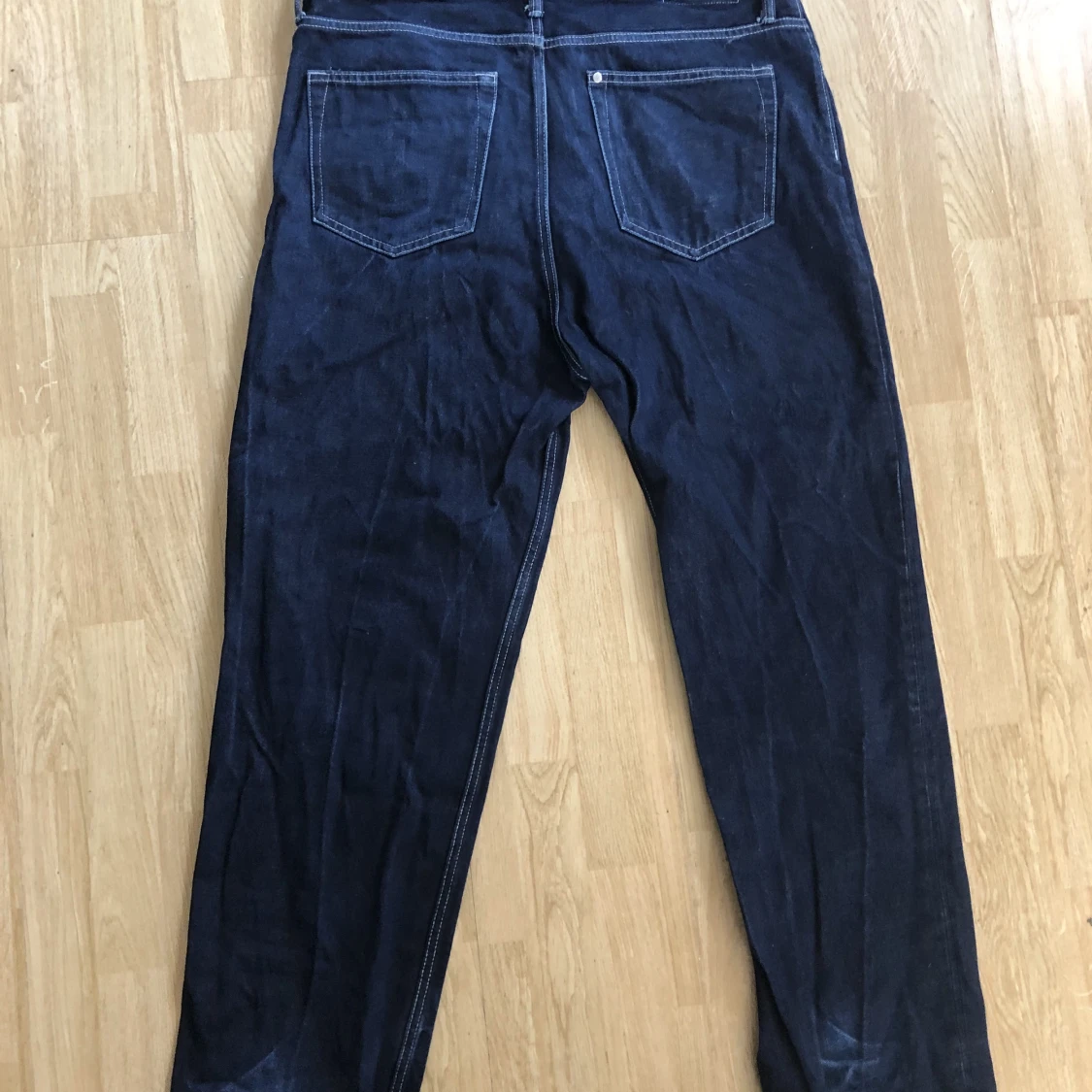 köpta från H&M, det är loose fit har andvänt dom några gånger, 9/10 i skick, säljer pga att jag inte har användning av dom. dom är mörk blåa