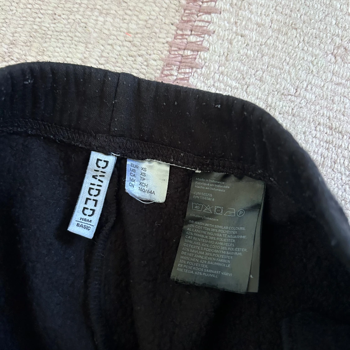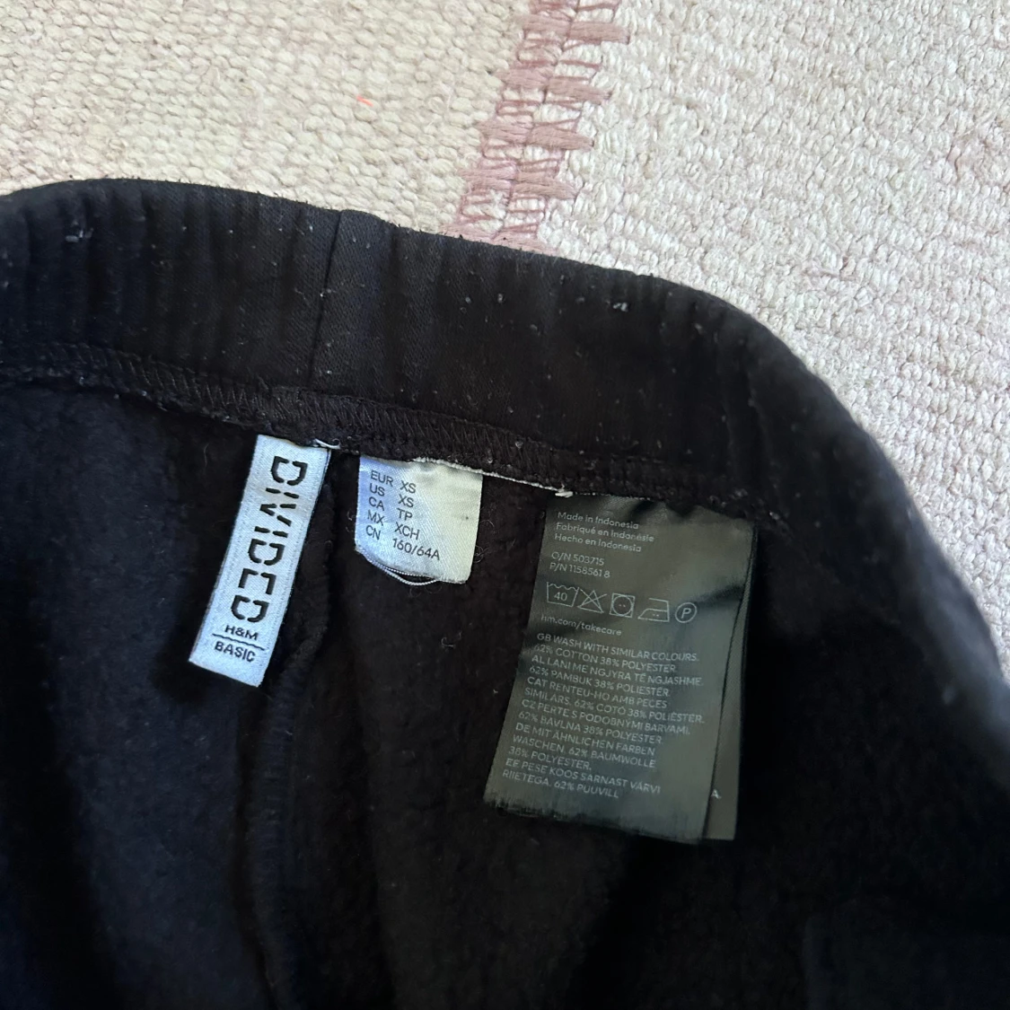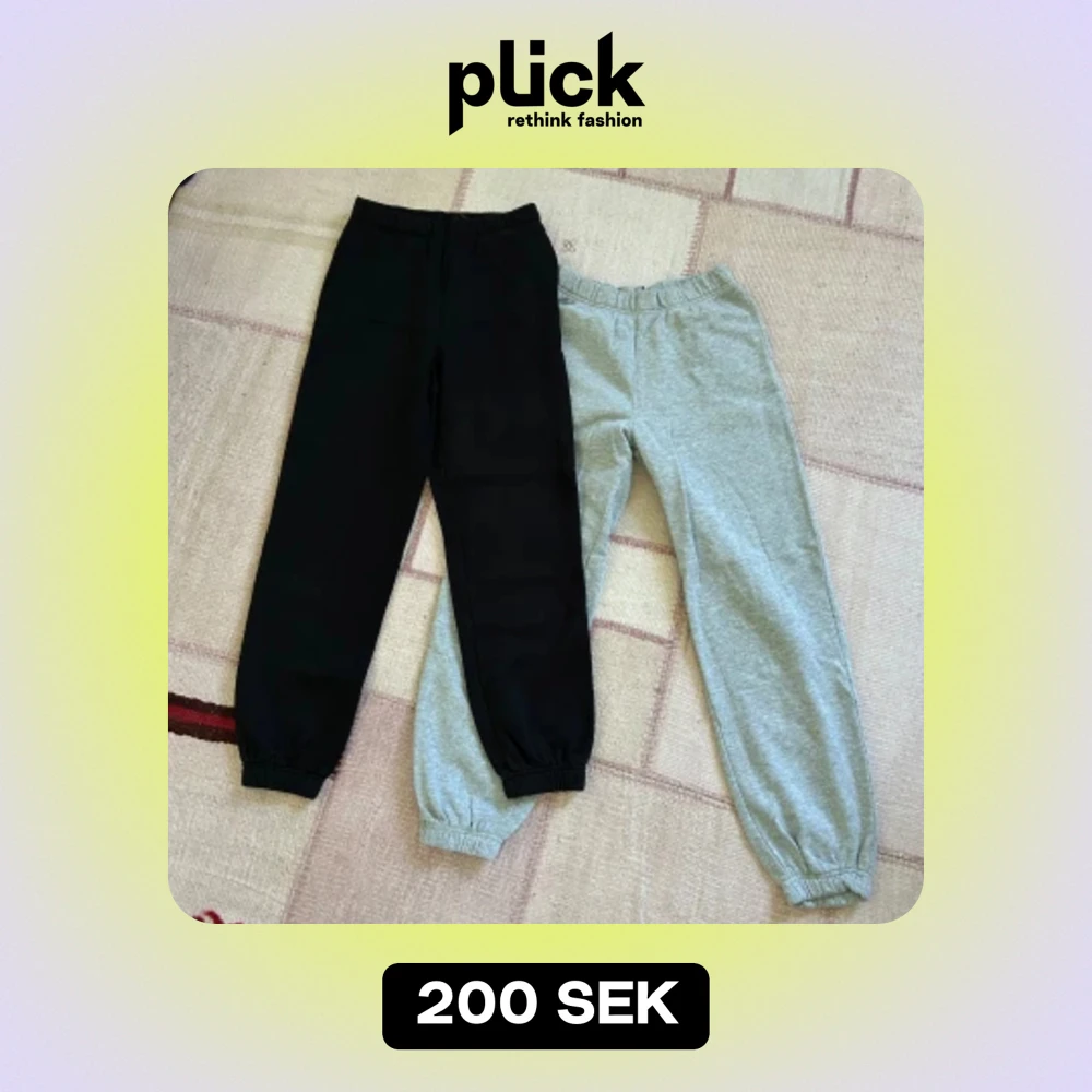 Svarta och gråa mjukis byxor från H&M i storlek 34/xs, säljs då de är för korta i längden för mig. Använda en gång. Köpte båda för 399kr. Material gråa: 77% bomull 23% polyester Material svarta: 62% bomull 38% polyester Insida ben längd: 79 cm