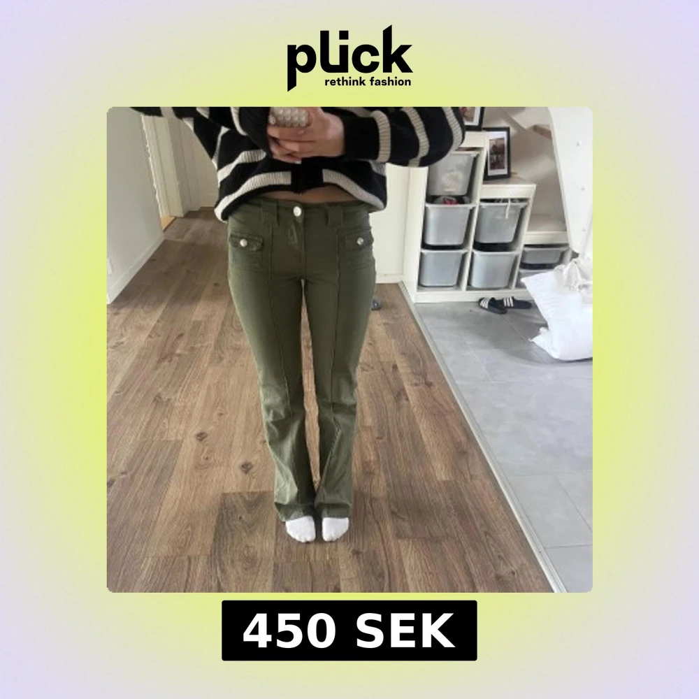 Köpte dessa jeans på Plick men råkade köpa fel storlek så därför säljs dem! Har aldrig använts, bara testade. Storlek 32 eller XXS (skulle säga att dem passar en XS). Skriv om ni har frågor eller vill ha fler bilder💗