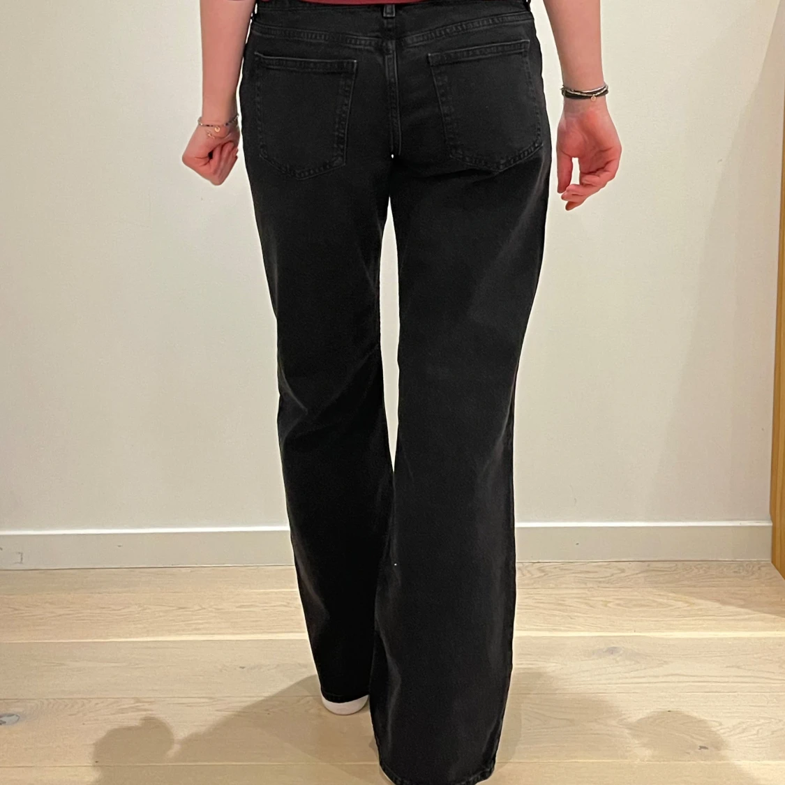 Svarta populära straight jeans med lite vidare ben från NA-KD. Helt nya med lappen kvar! Nypris 699, men säljer för endast 450kr. I storlek 38. Bara att skriva om fler bilder önskas💕