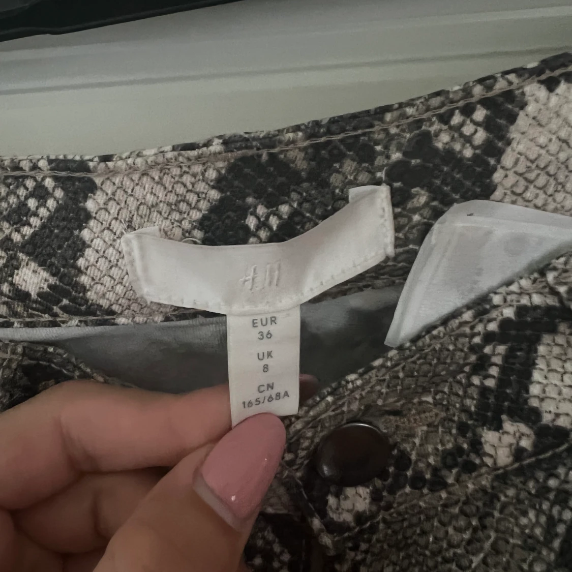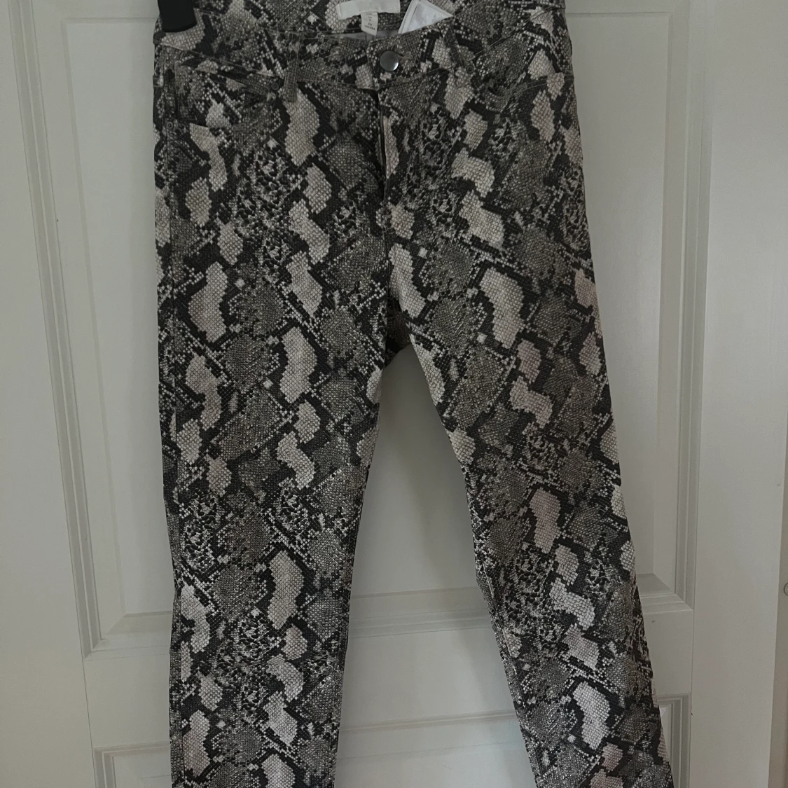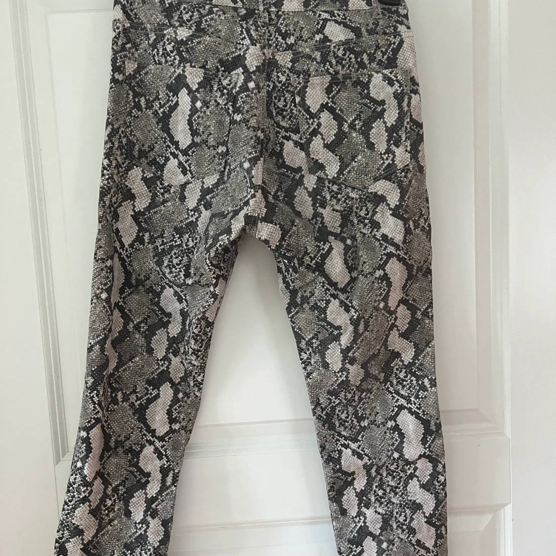 Dessa byxor sitter väldigt snyggt men har tyvärr blivit för små för mig. De är i storlek 36 och är vanlig i storlek. De har ett typ jeans material. Skriv gör mer bilder 😊