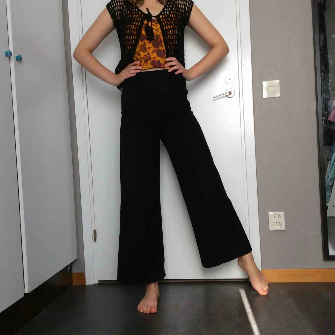 Detta par byxor är väl använda och älskade av mig, jag säljer dem nu då dem är lite för tajta i midjan. Trots mycket användande är dem i väldigt bra skick och färgen har knappt bleknat. Materialet är 66% polyester 32% viscose 2% elastine.