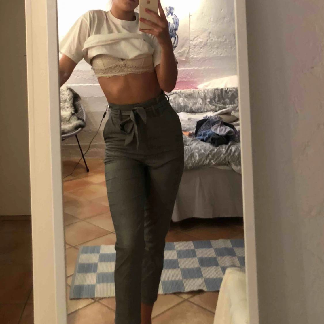 grå rutiga kostymbyxor med hög midja och knytning. från hm.