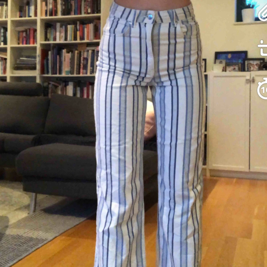 Snygga randiga jeans från hm med vida ben! Bra skick :)