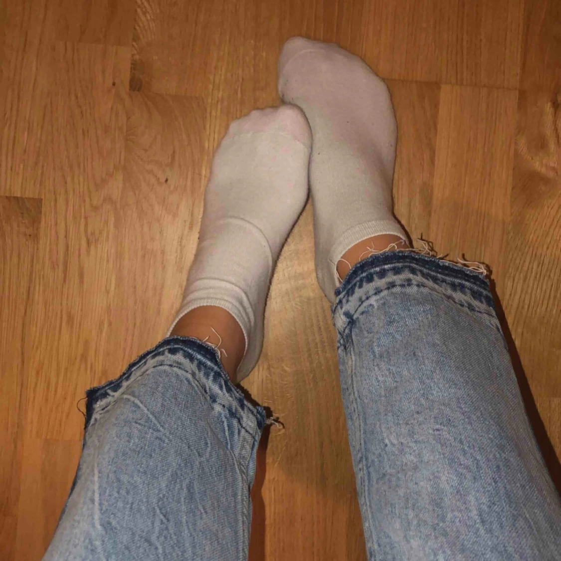 Ett par fina jeans med sträck på sidan och hål. Kommer aldrig till användning för mig därför säljer jag dem. Frakt tillkommer:)