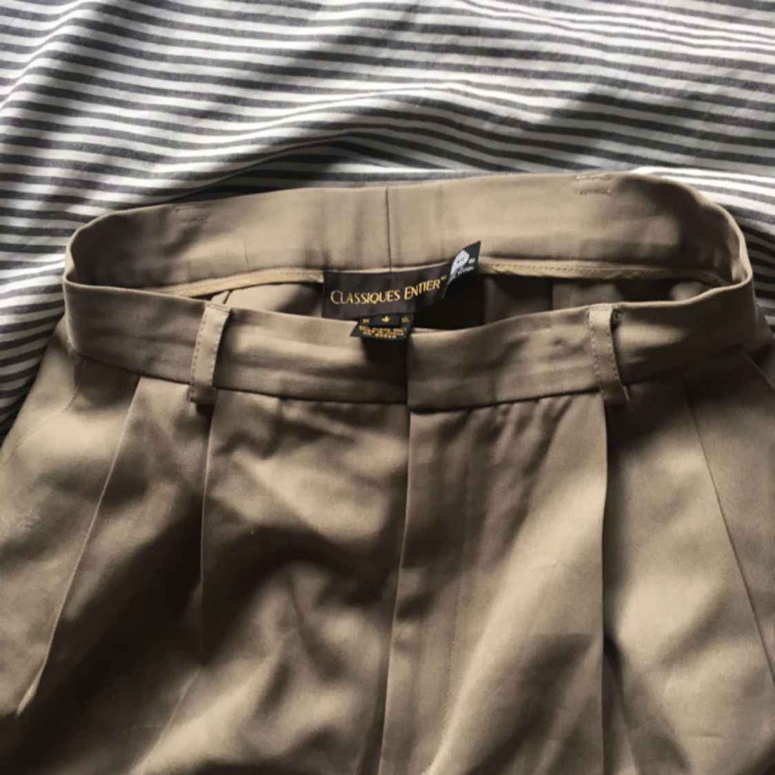 Ett par beiga kostymbyxor med stryckveck på benen. Smala i midjan och långa i benen. Köptes på beyond retro men Använder aldrig, köpare står för frakt 💕 (skrev in att märket var H&M för annars gick det inte att lägga ut annonsen. Riktiga märket heter Classiques Entier