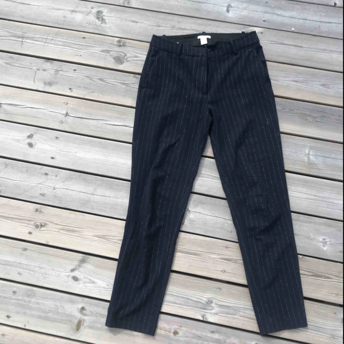 Super snygga Kritrandiga Mörkblåa byxor (slacks) från H&m med invävt glitter.