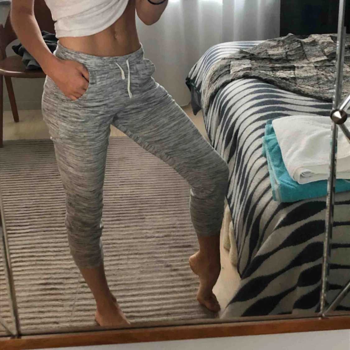 Väldigt sköna mjukisbyxor från H&M som inte är för varma och passar perfekt till sommarkvällar! Storlek 140 då de är från barnavdelningen, men sitter som på bilden för en XS tjej / 160cm. Skönt tunnt matrial och lätta att packa med sig.