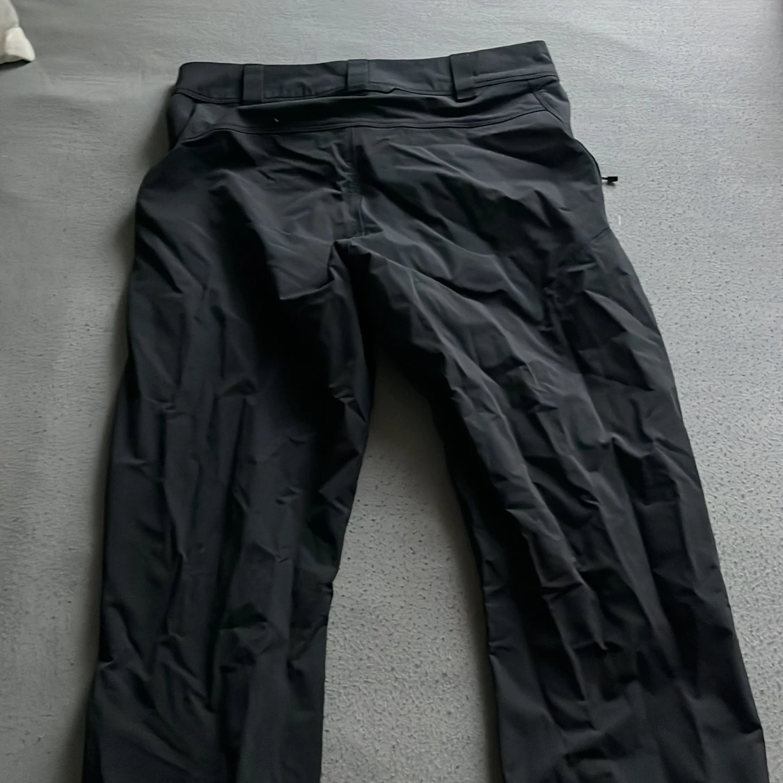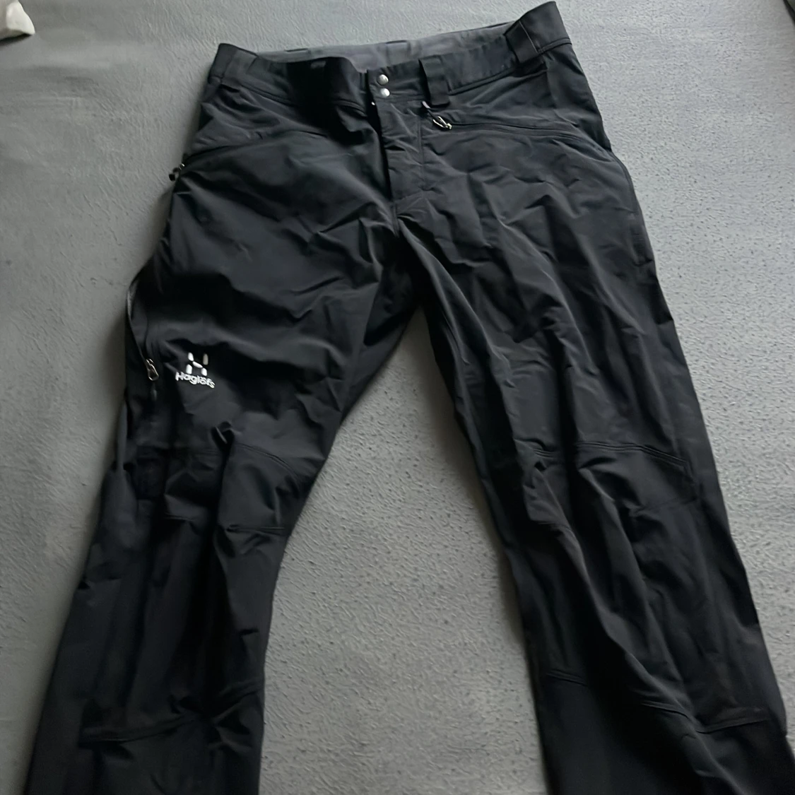 Svarta täckbyxor från Haglöfs i herrmodell, storlek S passa M också. Byxorna har flera praktiska fickor med dragkedja och bälteshällor. Materialet är slitstarkt och passar perfekt för utomhusaktiviteter. Snygg minimalistisk design med diskret Haglöfs-logga på benet.