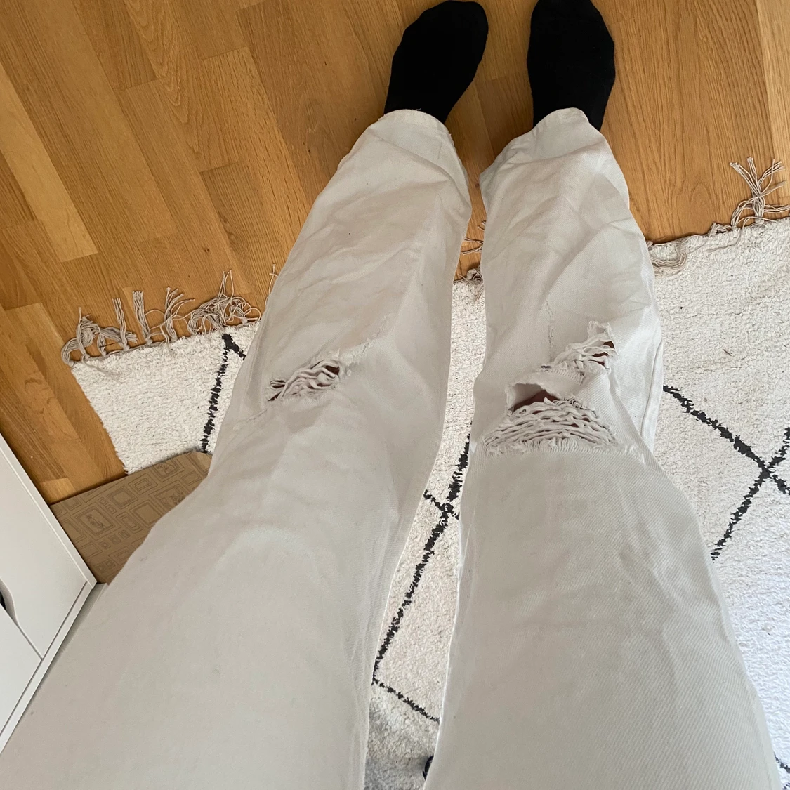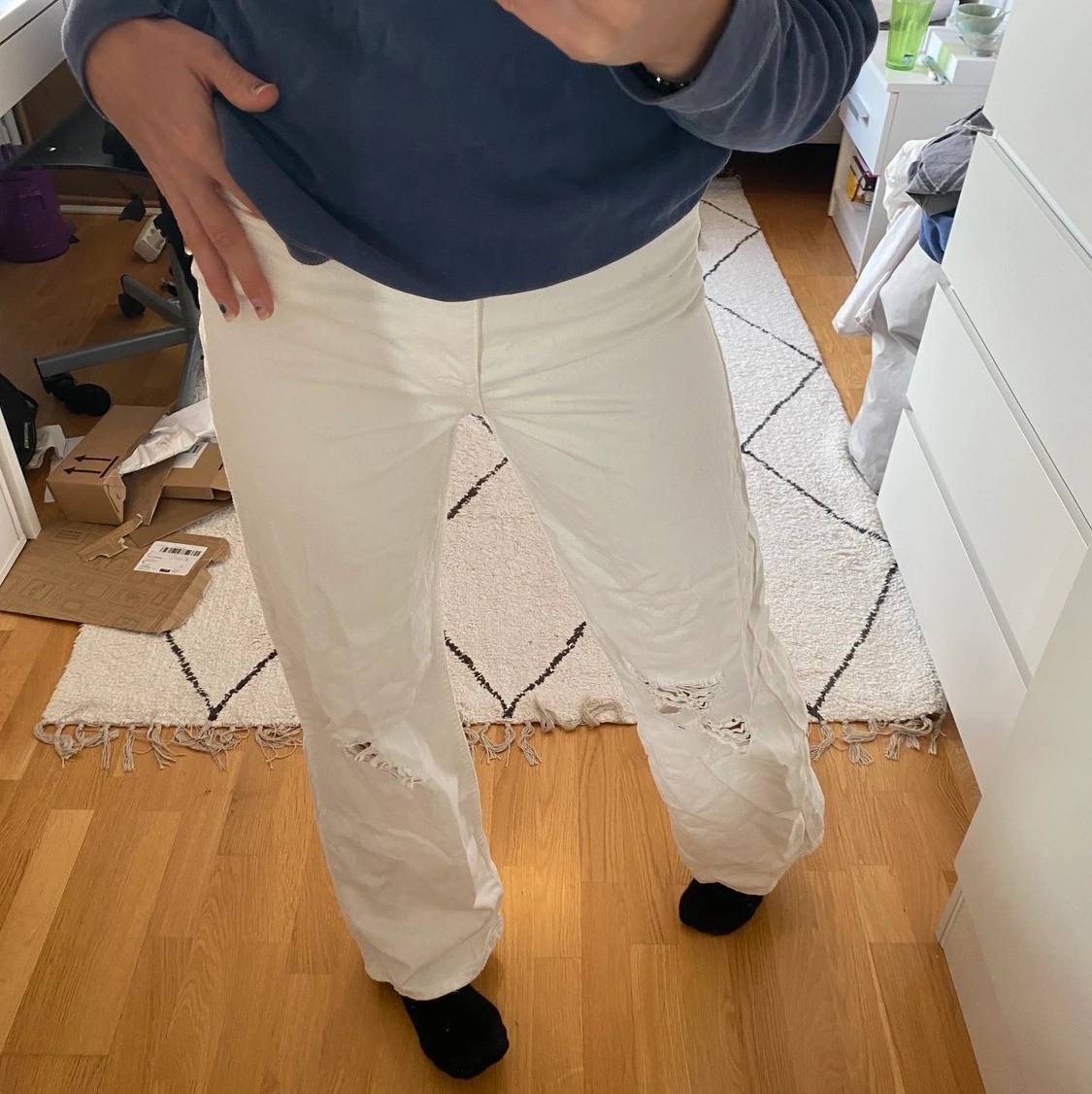 Jättefina vita jeans från Bershka som tyvärr inte kommit till stor användning💜 Jättefint skick. Jag är 173 och de är långa på mig💕 Bara att fråga om det finns funderingar!❤️🔥