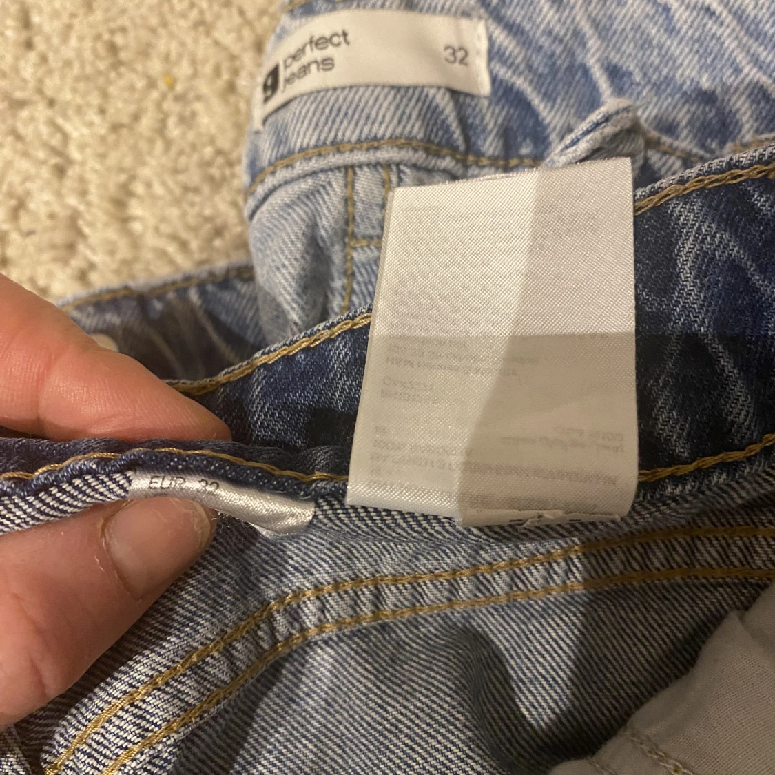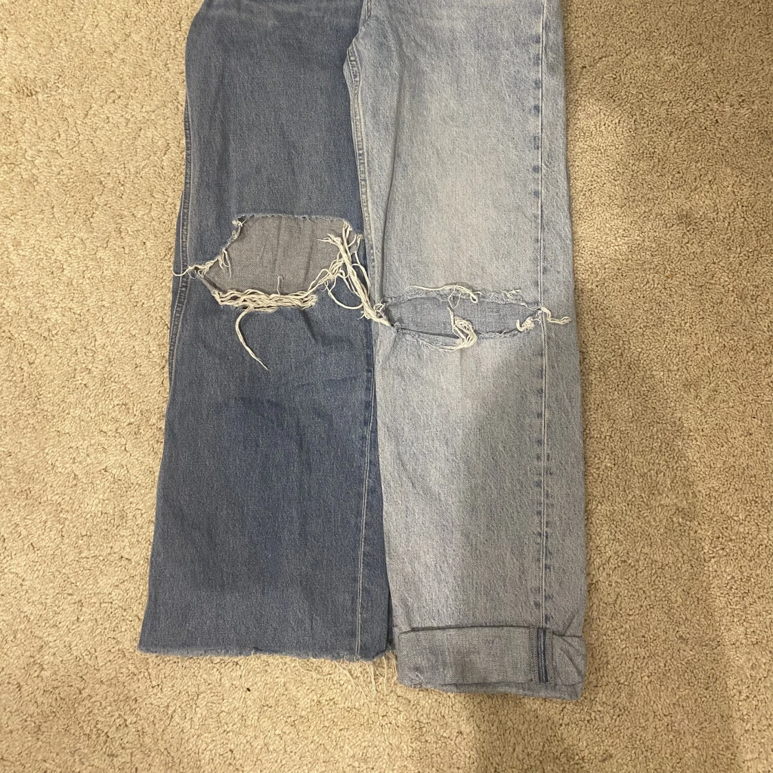 2 par jeans strl 32 med stora hål på knäna. 1 par från Ginatricot och 1 par från H&M.