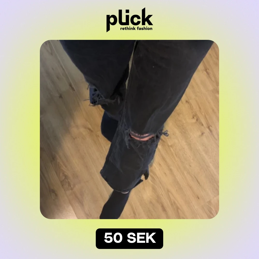 Jeans från &Denim. Högmidjade och wide leg. Slitningar / hål vid knäna. Nypris 250kr säljes för 50kr . STORLEK 8-9 år eller xssss