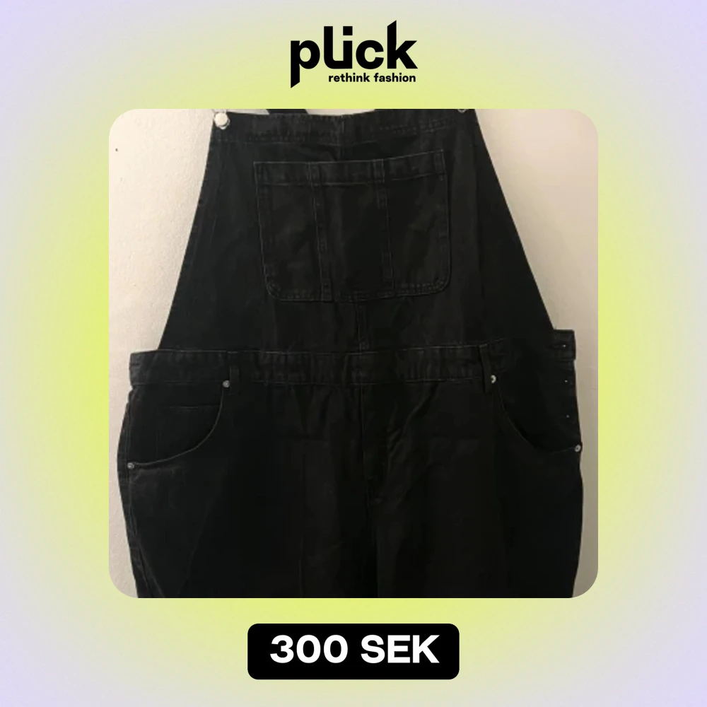 Hängselbyxor svart stentvättade i jeans material, med silver detaljer. Strl. XXL Normal/ mindre i storleken. Aldrig använda endast testad.