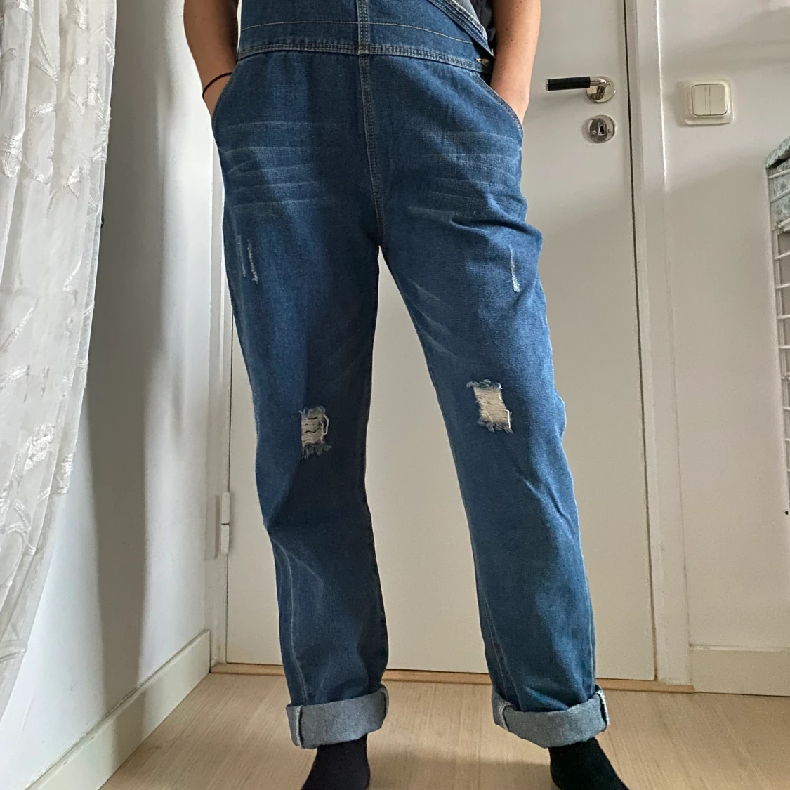 Ett par hängselbyxor köpta på en vintagebutik i Berlin. Snygg modell och fin tvätt. Går att anpassa längden i benen samt i hängslena. Stl L men passar allt från S