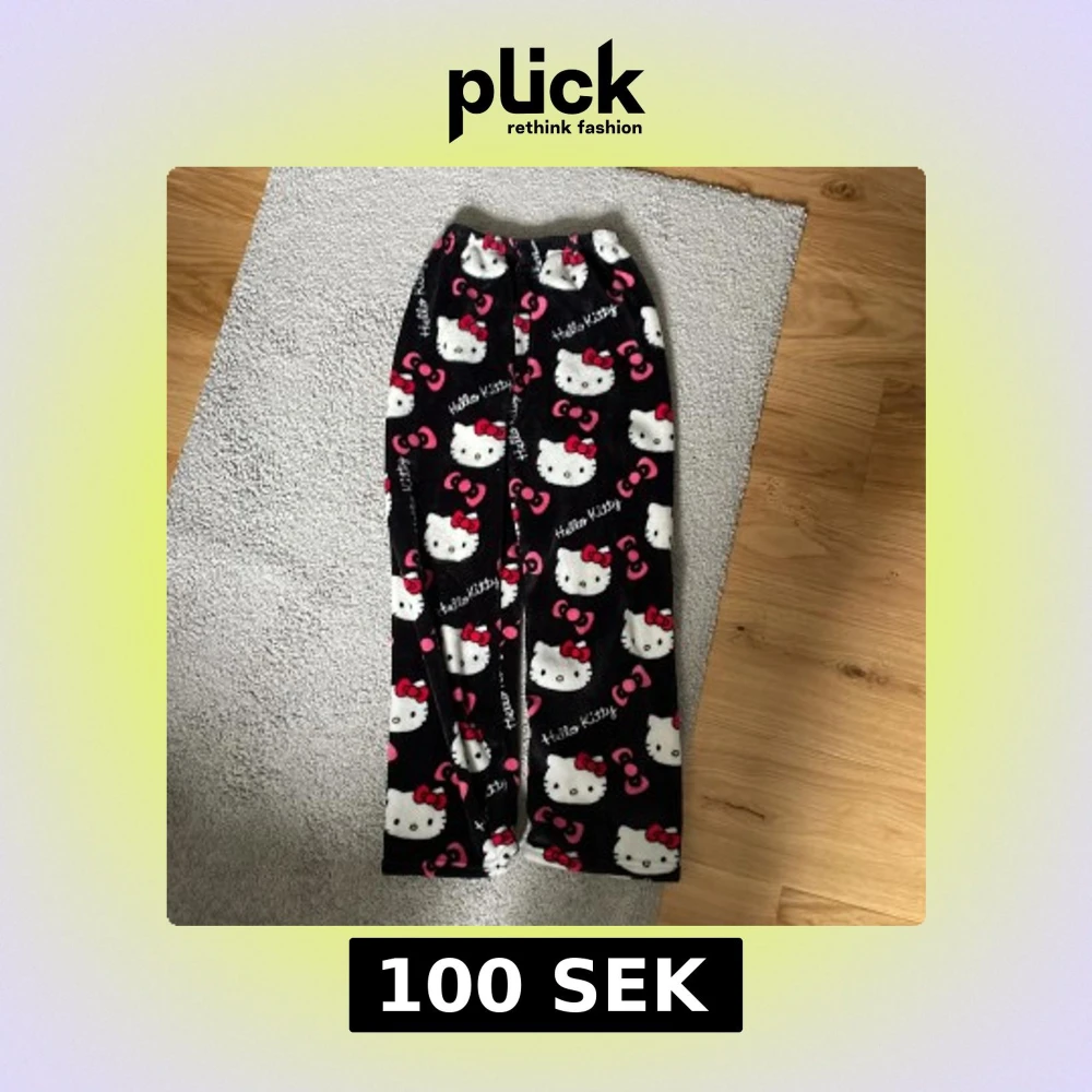 Supergosiga svarta mjukisbyxor med Hello Kitty-motiv och rosa detaljer. Byxorna har resår i midjan och är gjorda i mjuk fleece, perfekta för att chilla hemma. Sött tryck med Hello Kitty och rosetter över hela byxan.