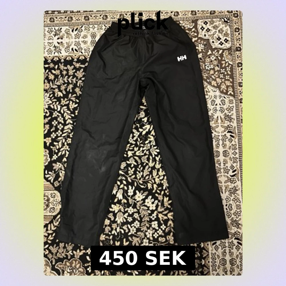Svarta täckbyxor från Helly Hansen med elastisk midja och HH-logga på framsidan och inuti byxan. Byxorna har raka ben och justerbara benslut med kardborre. Byxorna är fodrade och lämpar sig för kallt väder.