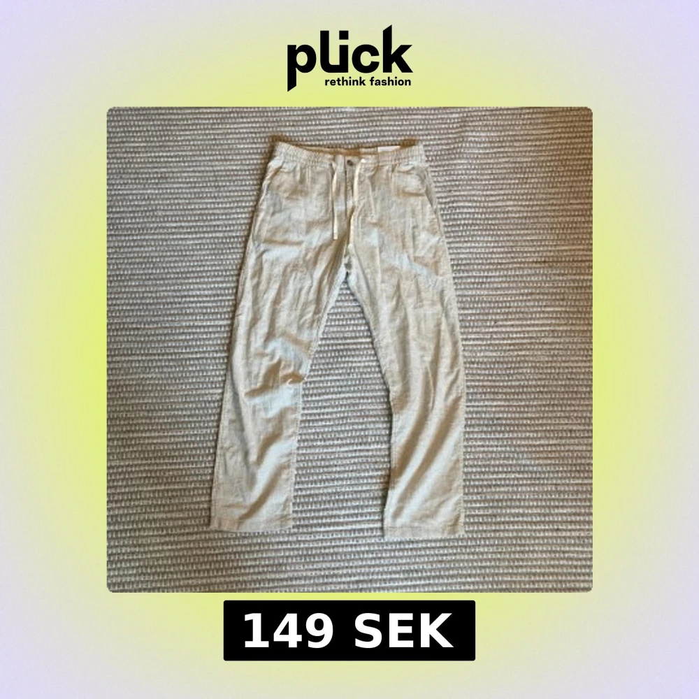 Nypris 400 kr. Ett par byxor i luftig, vävd bomulls- och linblandning. Byxorna har klädd resår och dragsko i midjan, sidfickor och stolpficka bak. Gylf med dragkedja och knapp. Regular Fit för en bekväm, klassisk silhuett. I bomulls- och linblandningar kombineras bomullens mjukhet med linnets slitstyrka, vilket ger ett följsamt tyg med textur och god andningsförmåga. FÄRG:Crèmevit. Storlek M Art.nr: 1253401001