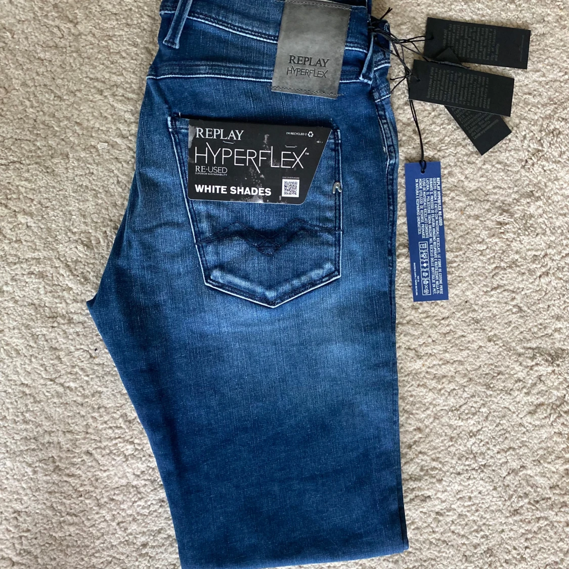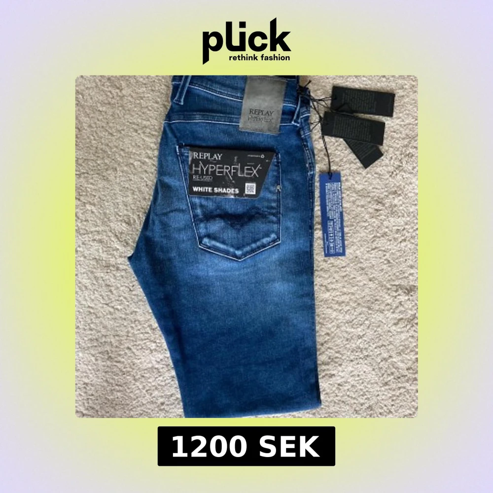 Tja säljer dessa HELT nya replay anabass hyperflex jeans! Dom har bara varit testade för bilden och så skicket är såklart 10/10. Nypris kostar 2000kr‼️priset kan diskuteras vid snabb affär 🏬 Frakt inom 24h om det är instabox! Vill ni ha bilder med dom på så är det bara att höra av er👍. Dom är stretchiga så storleken passar många!