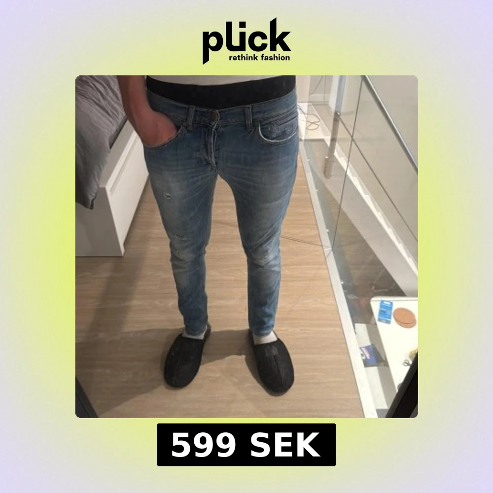 Säljer ett par blå skinny jeans från Dondup med coola slitningar och tvättade detaljer. Jeansen har klassisk femficksdesign, låg midja och smal passform som sitter snyggt längs benen. Materialet är mjukt jeans och de har dragkedja och knapp framtill. Lite tajta på mig, jag är 185cm och väger 75kg✌️
