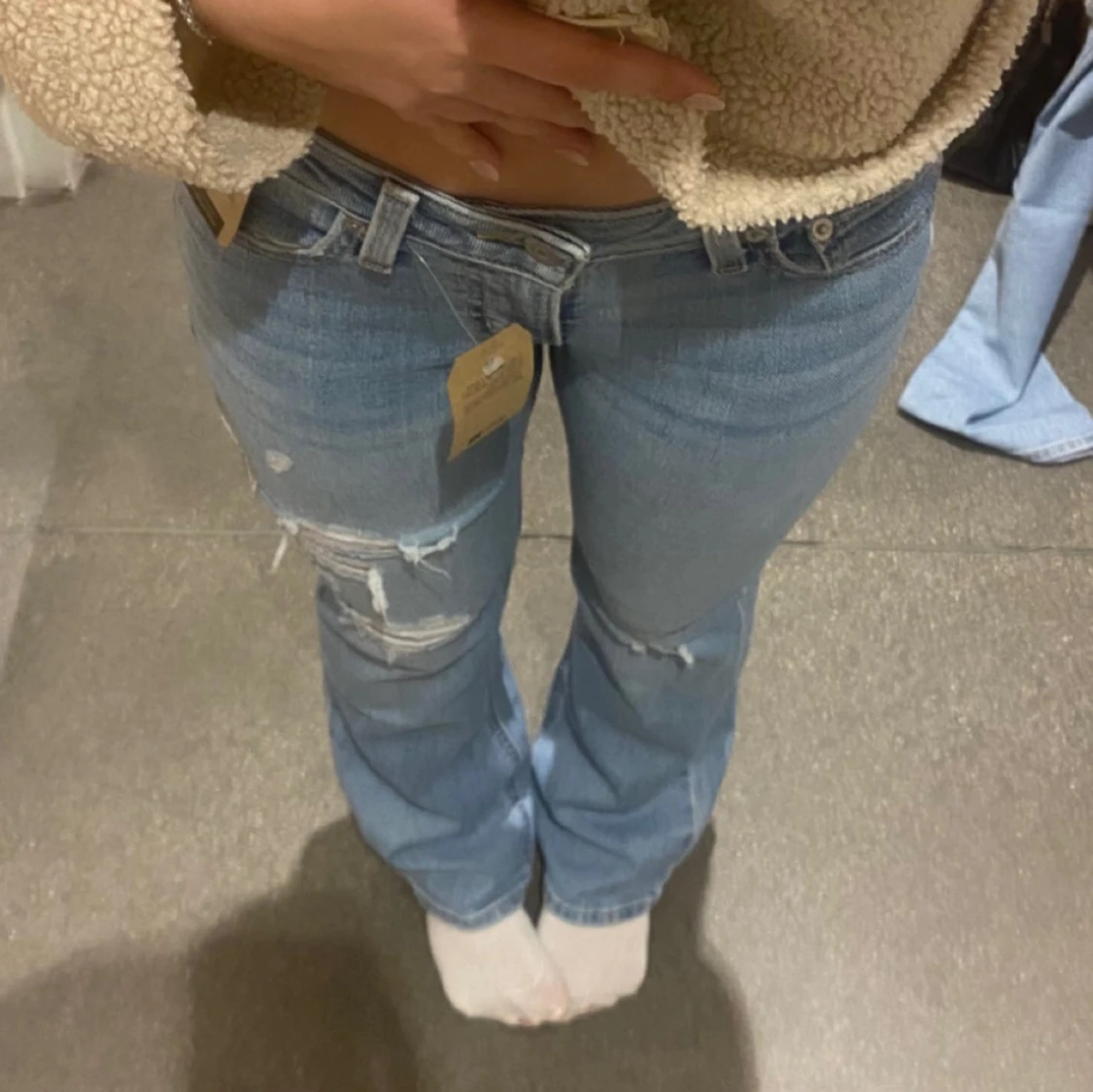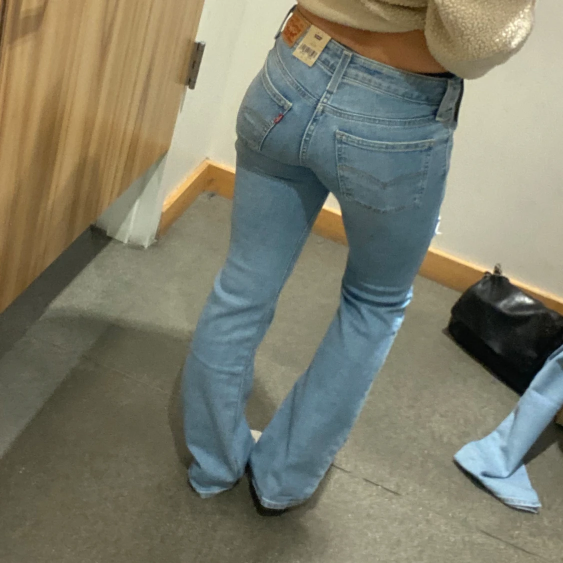 Säljer dessa super fina superlow bootcut jeans från Levi’s 💓 Tidigare par har lagts upp på min systers Plick. Jag säljer dessa som är helt identiska och helt oanvända med alla lappar kvar 💕Hör av dig för frågor, om passform, mm.. ❤️(Jag är 164cm)