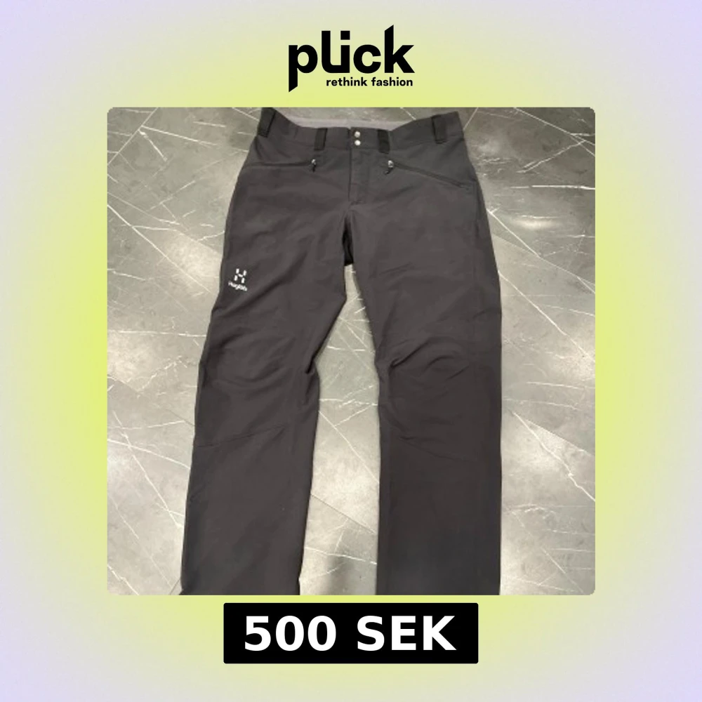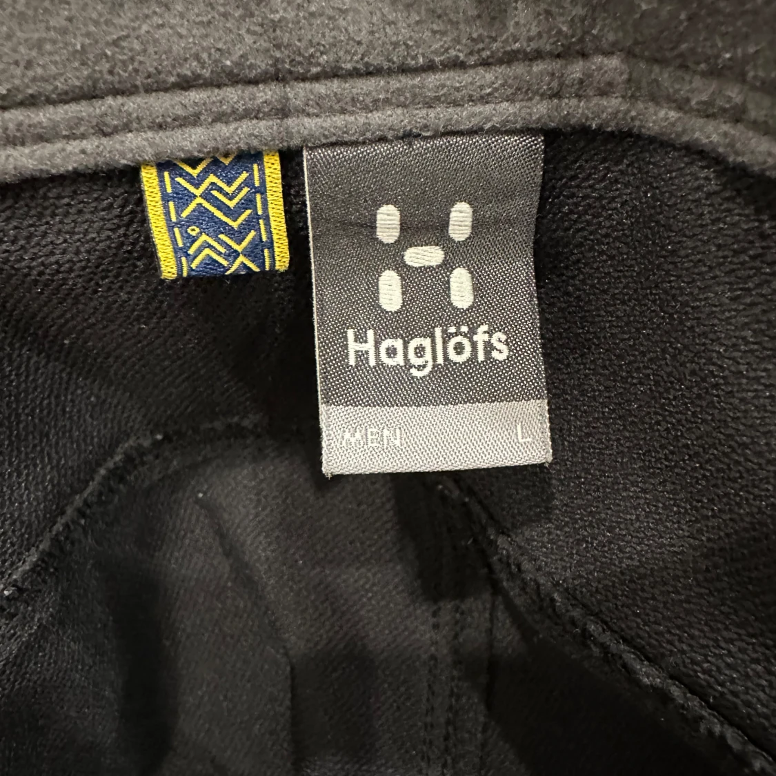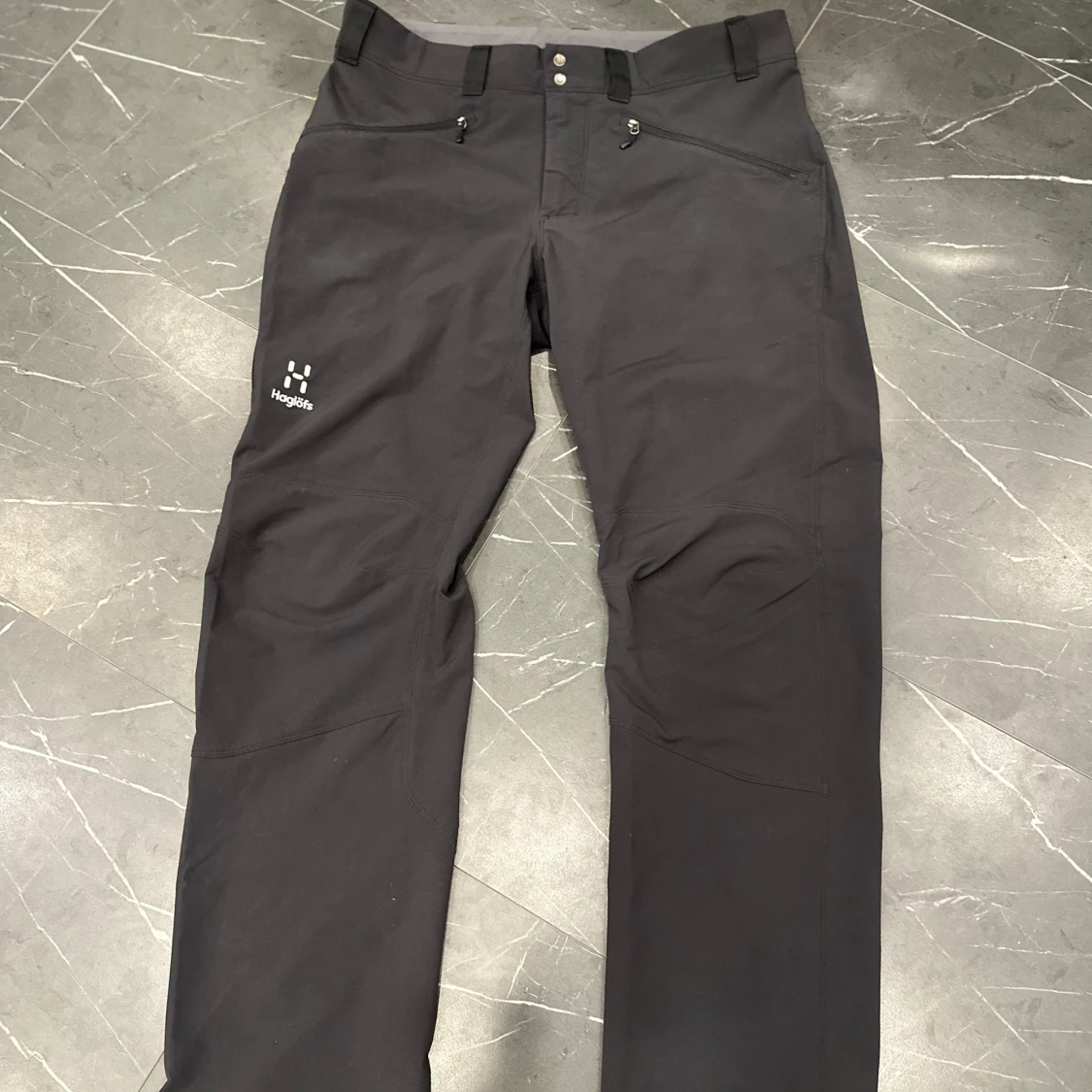 Svarta friluftsbyxor från Haglöfs med diskret logga på låret. Byxorna har normal passform, dragkedja och knappar i midjan samt praktiska fickor. Perfekta för utomhusaktiviteter och äventyr.