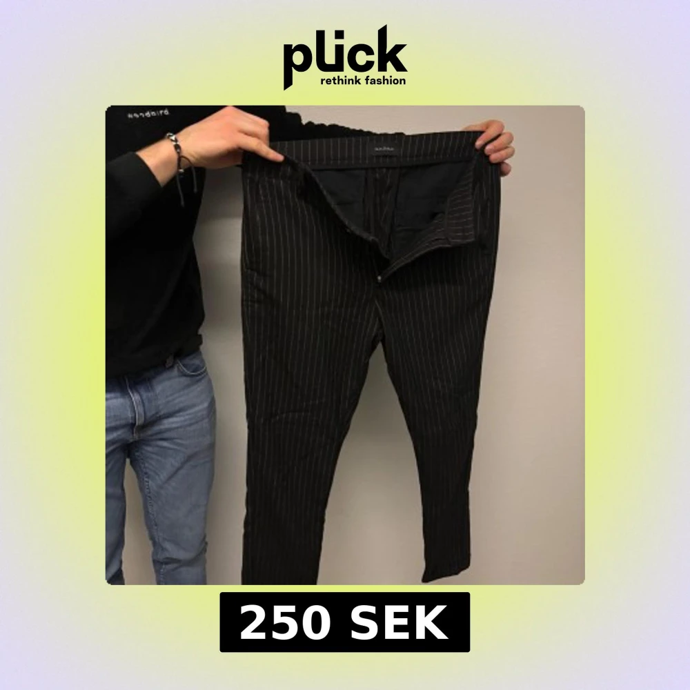 Snygga svarta byxor från Gabba med vita ränder. De har en dragkedja och är designade i Danmark. Perfekta för en stilren look.
