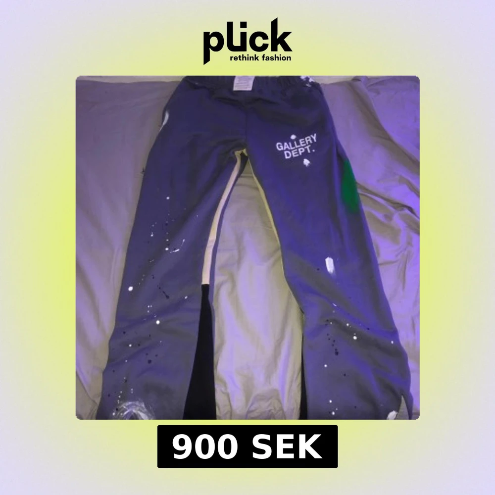 Säljer ett par grå mjukisbyxor från Gallery Dept. med coola färgstänk och tryck. Byxorna har en avslappnad passform och är tillverkade i 100% bomull. Perfekta för en chill dag hemma eller en avslappnad utflykt.