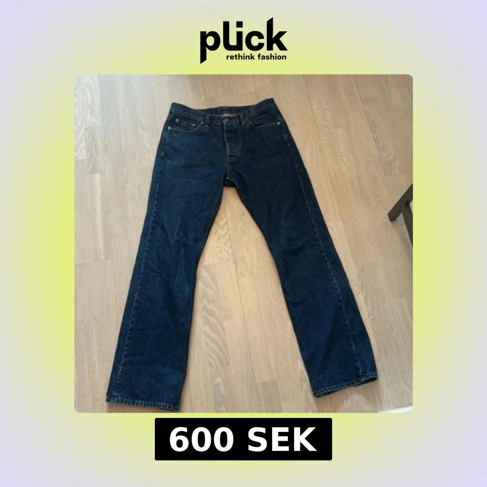 Mörkblåa jeans från Hope med en relaxed bootcut. Väldigt bra skick och i strl 31. Passar någon som är ca 185.