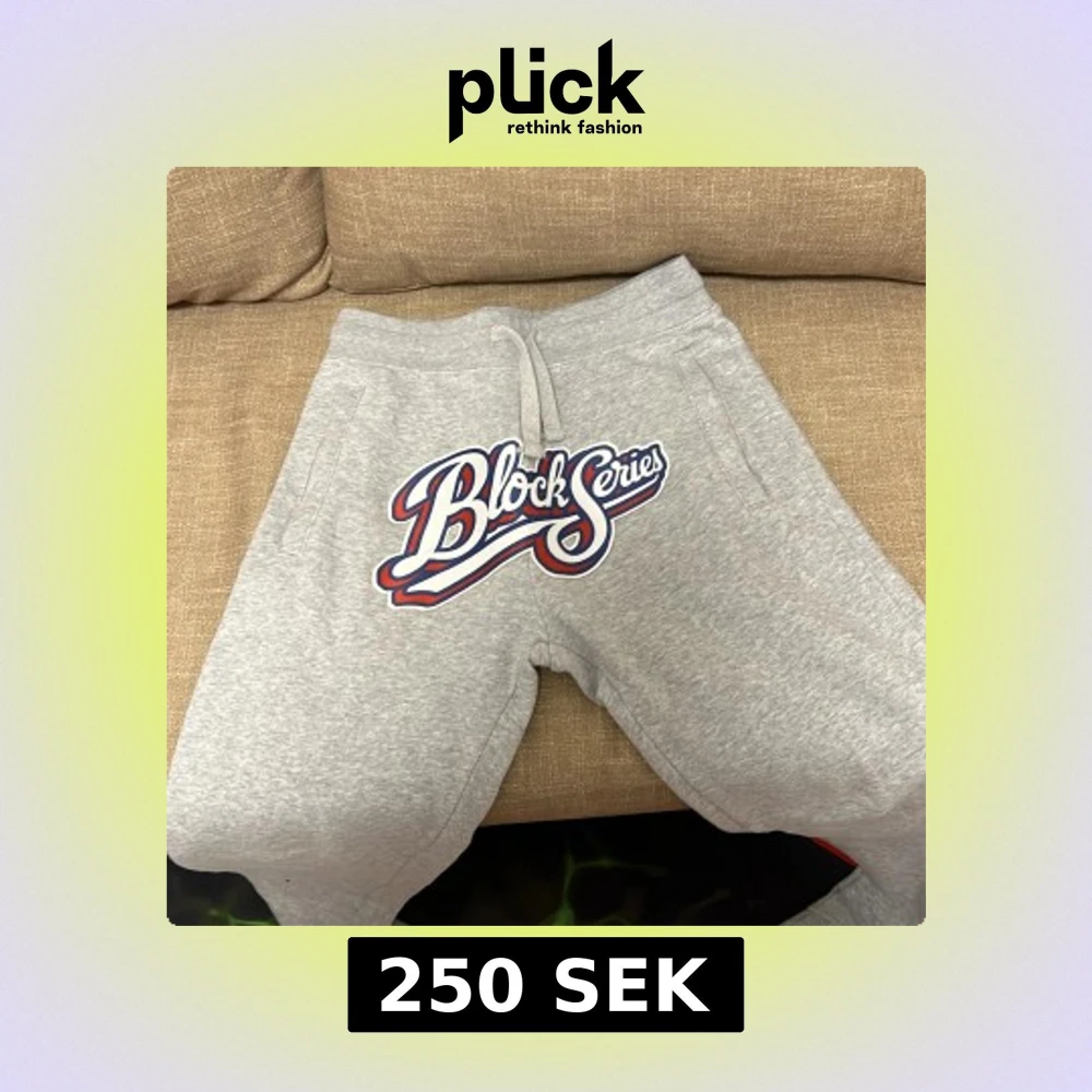 Grå mjukisbyxor från Russell med trycket 'Block Series' framtill. Byxorna har dragsko i midjan, två sidofickor och en bakficka med patch. Perfekta för en avslappnad stil.