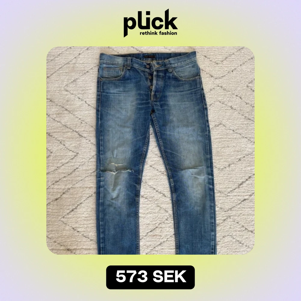 Storlek 32, Nudie jeans, bra skick, slimfit, modell med hål på högra knät. Ser mer använda ut än vad de är.