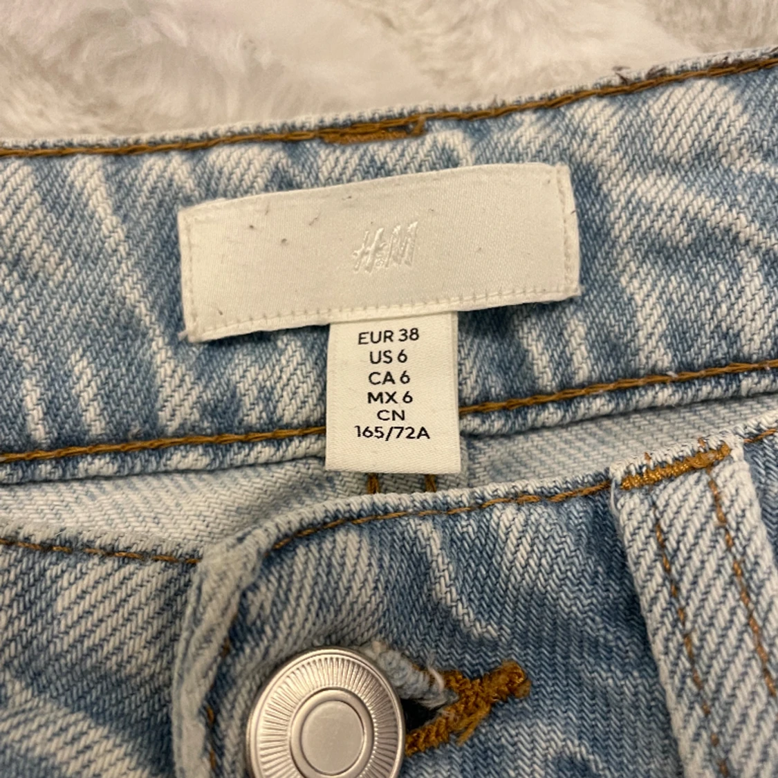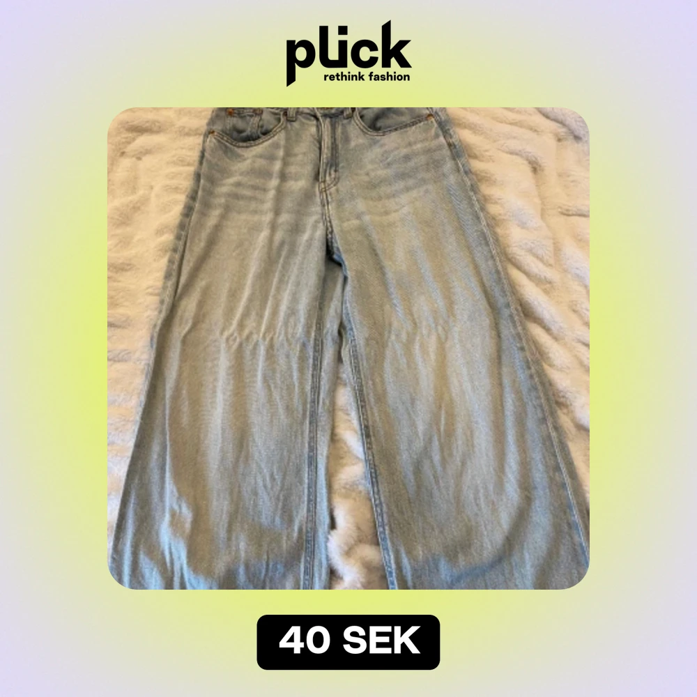 Ett par ljusblĂ„a high waist jeans frĂ„n H&M đ Ăr i helt okej skick men anvĂ€nda ett par gĂ„nger đ