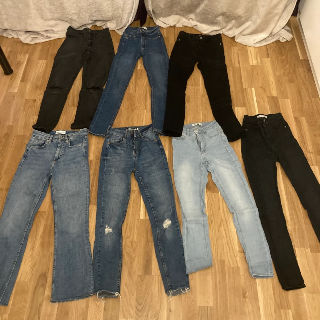 Skinny jeans från bikbok, hm, gina osv, ett par flare jeans, säljer för 100 kr styck och står ej för frakt. Skriv gärna privat för funderingar 💗