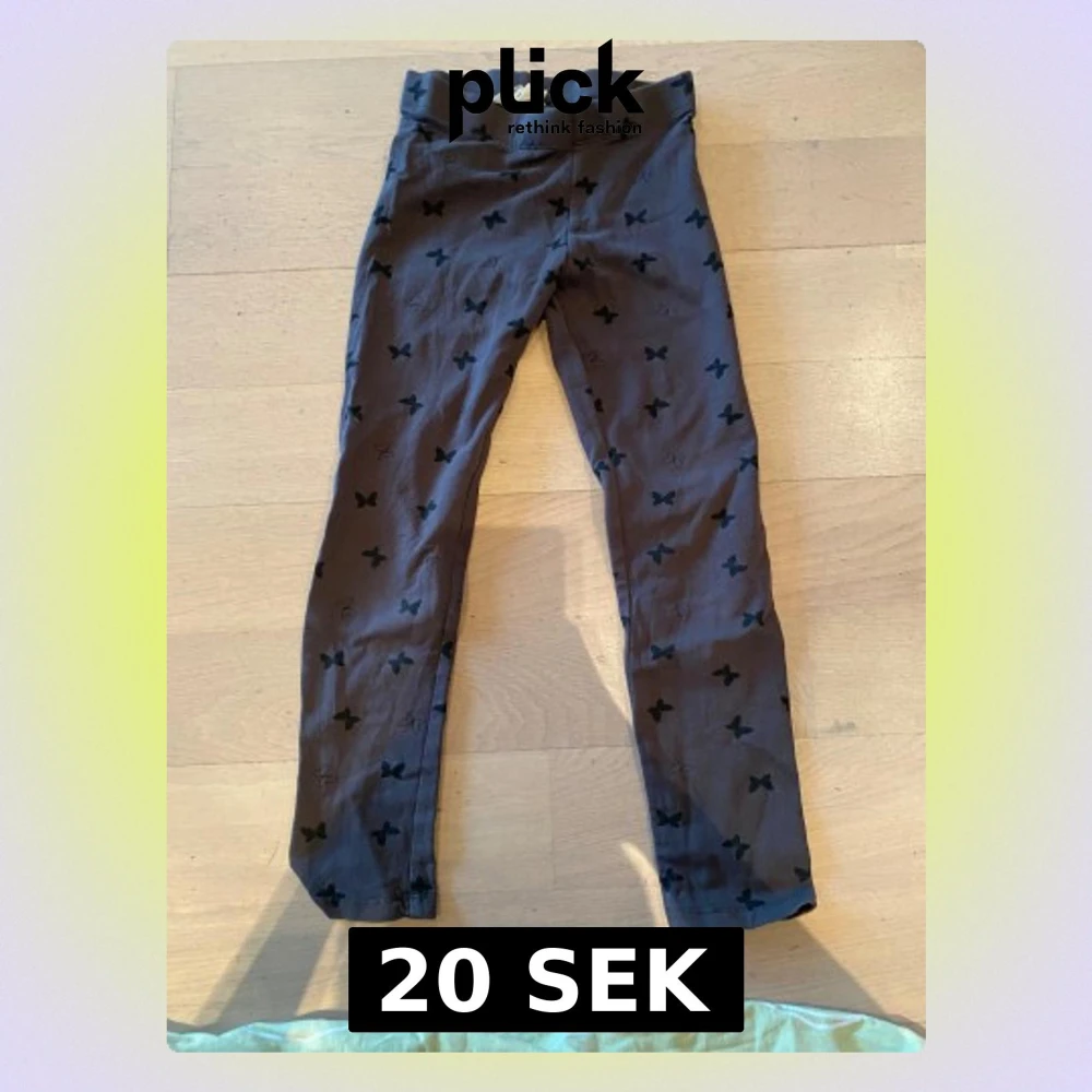 Snygga grå leggings från H&M med svarta fjärilar över hela byxan. De är tillverkade i mjuk bomull och har en elastisk midja för skön passform. Perfekta för dig som gillar coola detaljer och mönster.