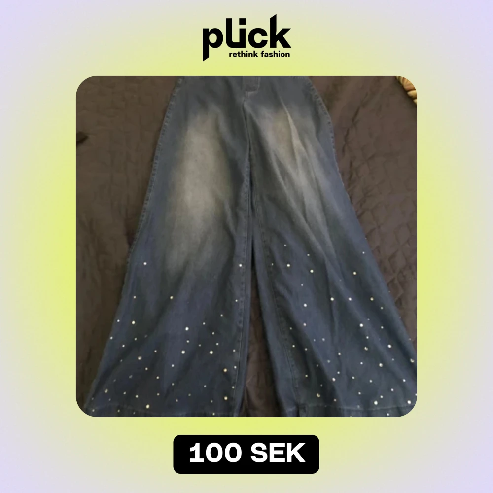 Blå jeans med silver kristaller på i bra skick 146/152