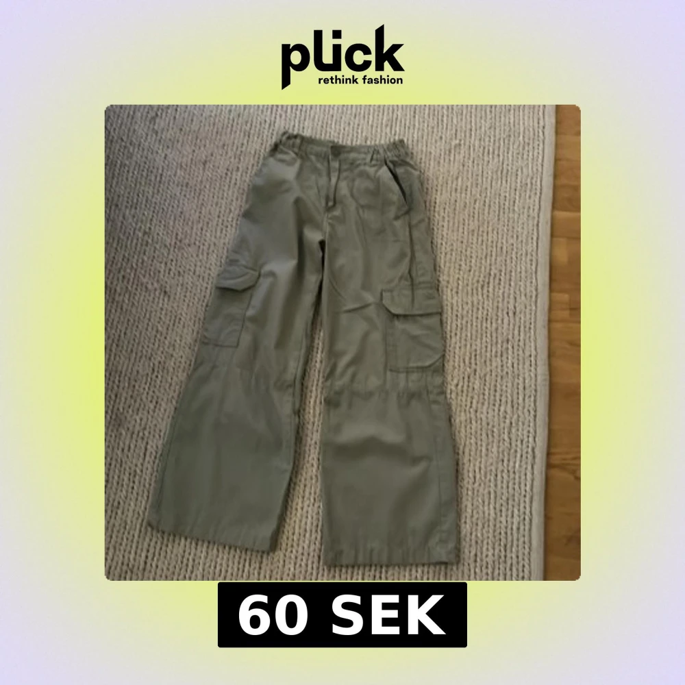 Snygga gröna cargobyxor från H&M i storlek 146. Byxorna har breda ben, flera praktiska fickor på sidorna och bak, samt resår i midjan bak för extra komfort. Perfekta för en avslappnad och cool stil.