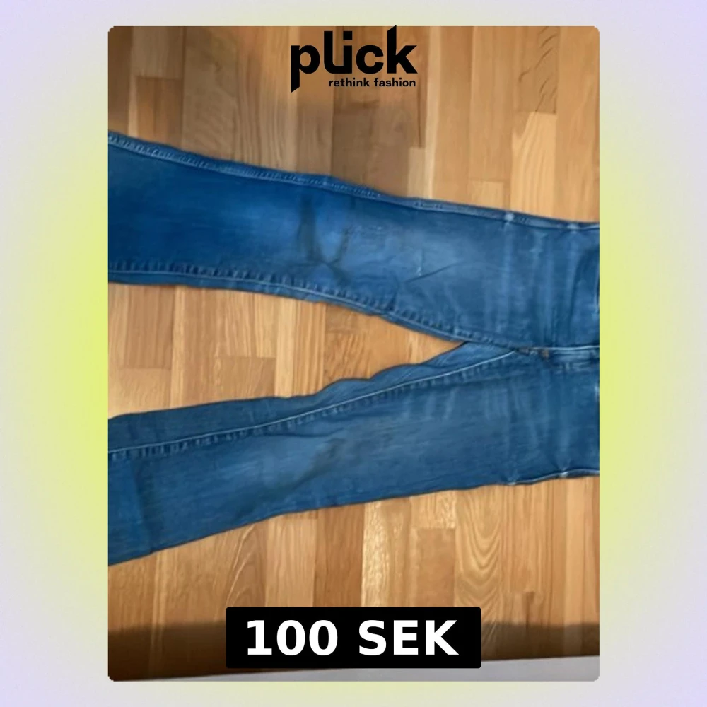 Säljer ett par blå lowwaist bootcut jeans utan fickor på baksidan och normal passform. Jeansen har en snygg tvättad look och är tillverkade i jeansmaterial med bomullskänsla. Perfekta för dig som gillar en tidlös och avslappnad stil. Säljer då jag växt ur dem på längden.