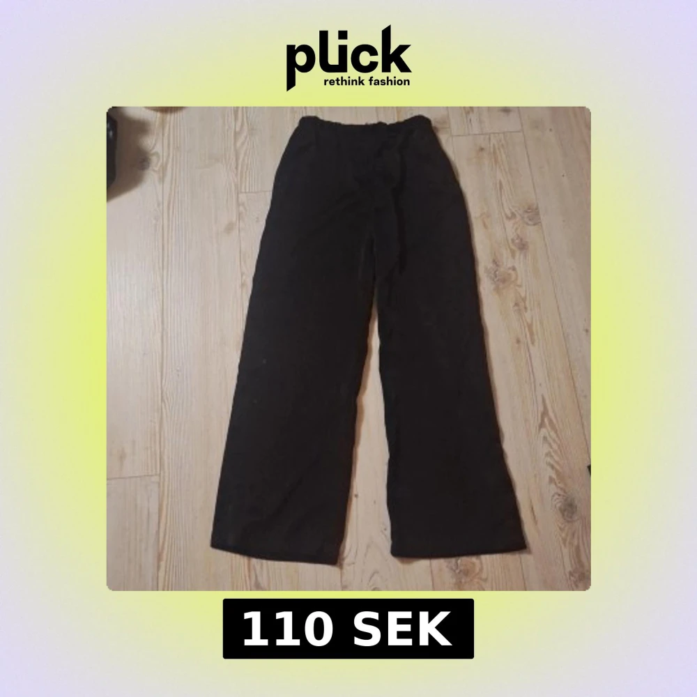 Säljer ett par svarta kostym-byxor i 100% polyster ifrån H&M i storlek 152. Byxorna har en bred och bekväm resår i midjan och ett rakt, lite vidare ben. Perfekta för en chill och stilren look. Materialet är mjukt och känns skönt mot huden.