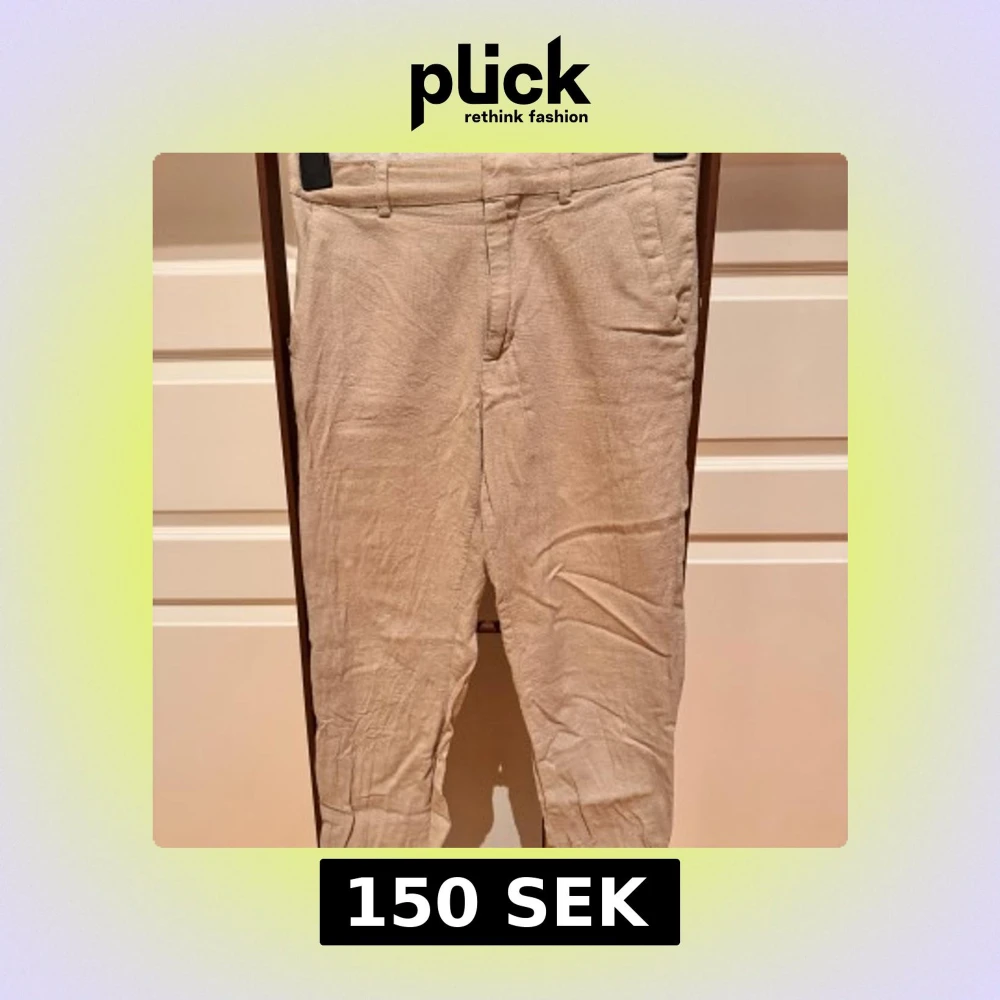 Snygga beiga linnebyxor med klassisk design och normal passform. Byxorna har fickor i sidorna, bälteshällor och stängs med dragkedja och knapp. Perfekta för en avslappnad och stilren look under varmare dagar.