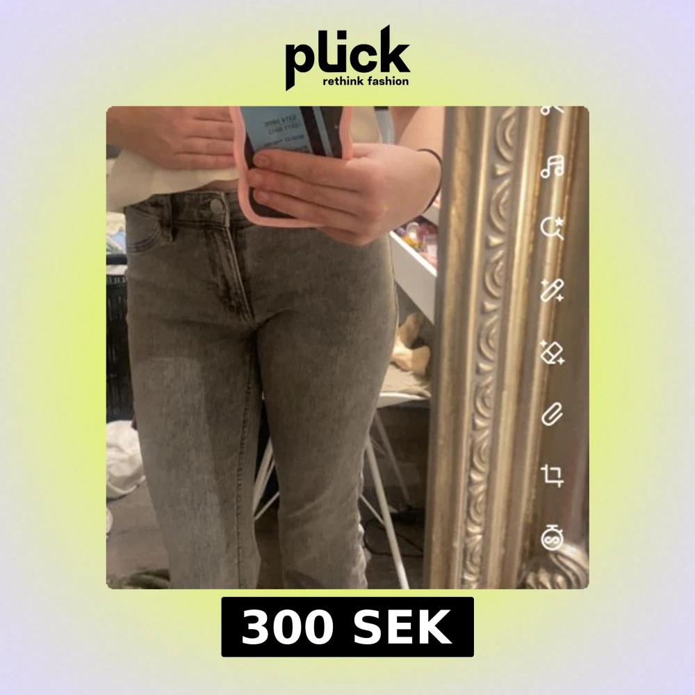 Lågmidjade grå jeansbyxor med en klassisk femficksdesign. De har en knapp och dragkedja framtill och är i en stilren grå färg som passar till det mesta. Perfekta för en avslappnad look.