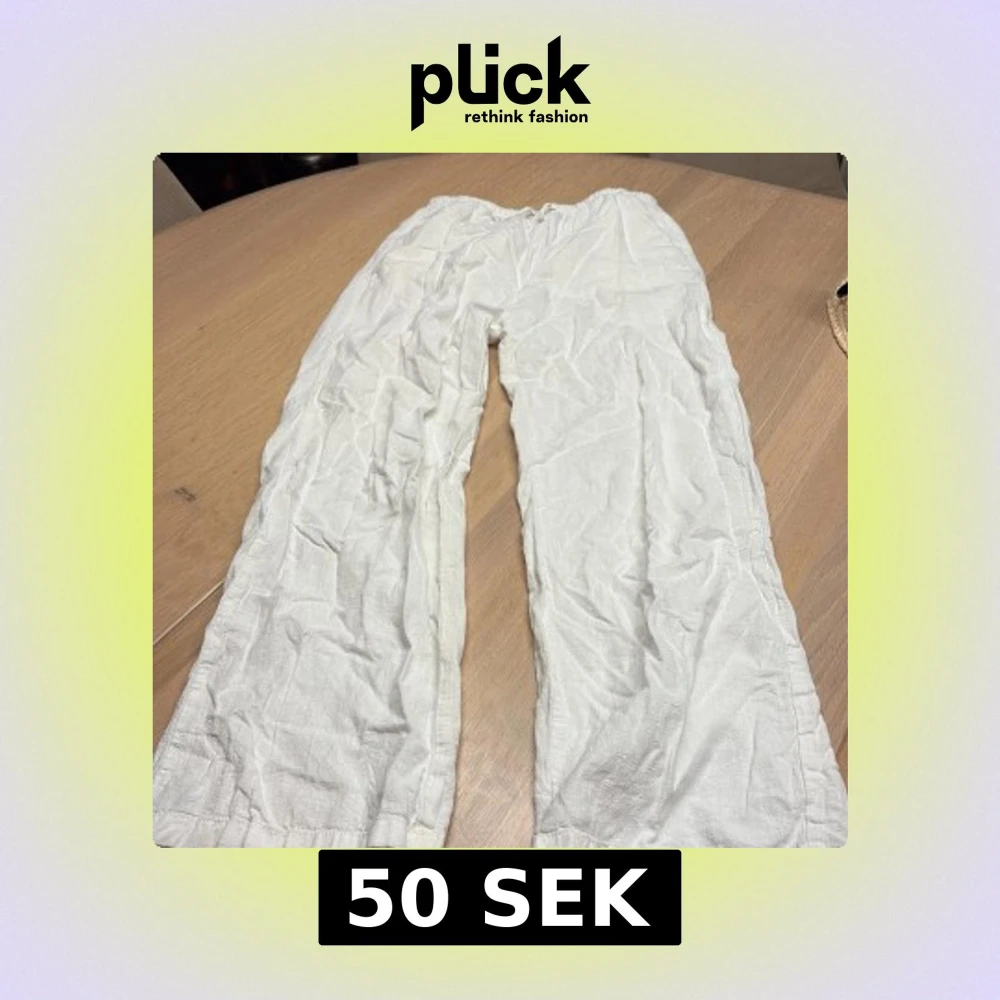Snygga vita linnebyxor från H&M i storlek 164. Byxorna har rak passform, resår i midjan och diskreta bakfickor. Perfekta för en chill och fräsch look under varma dagar. Materialet är lätt och luftigt linne.stryk dem och de kommer se nya ut