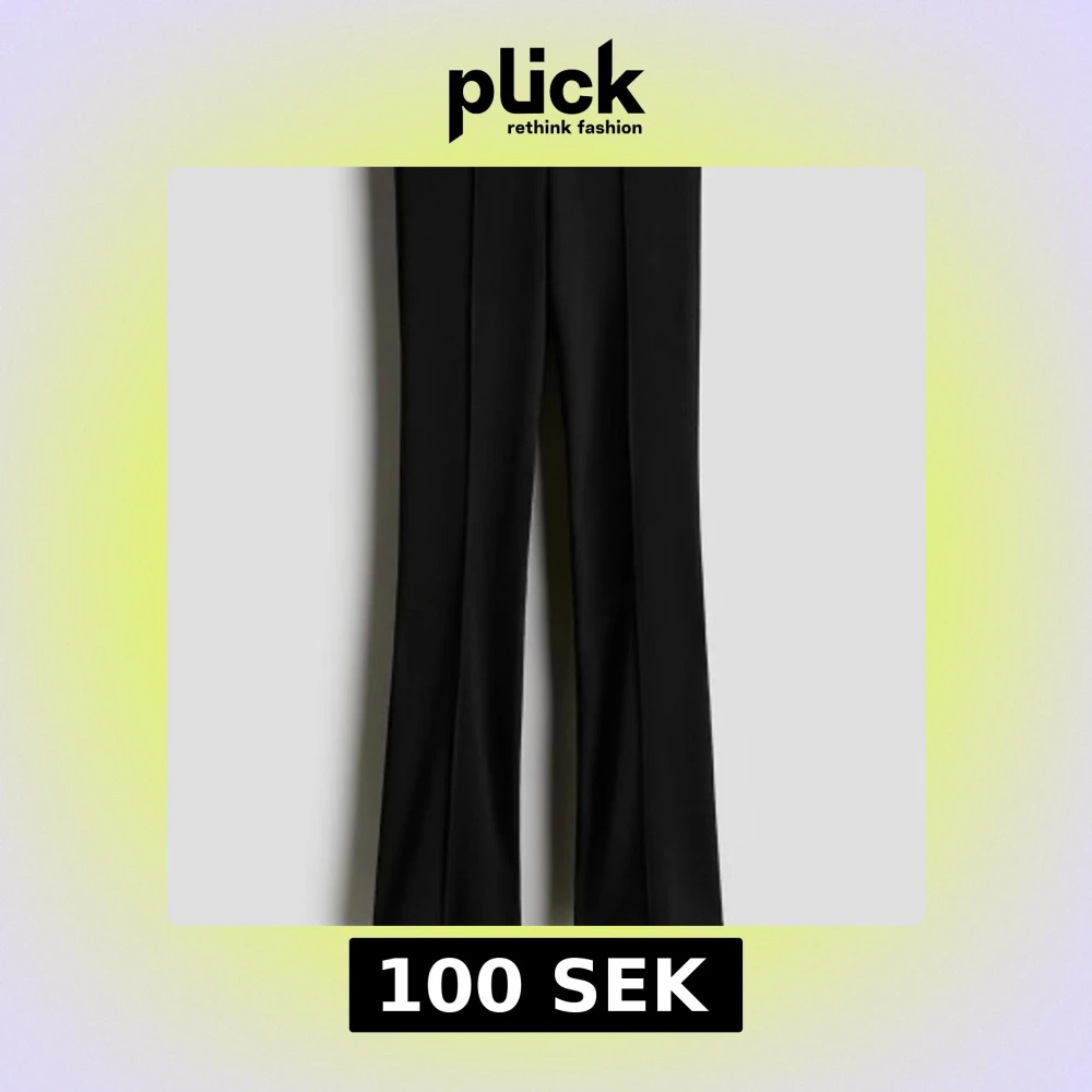 Klassiska svarta byxor med pressveck och rak passform. Perfekta för en stilren och clean look. Byxorna har hög midja och vida ben som ger en snygg siluett.