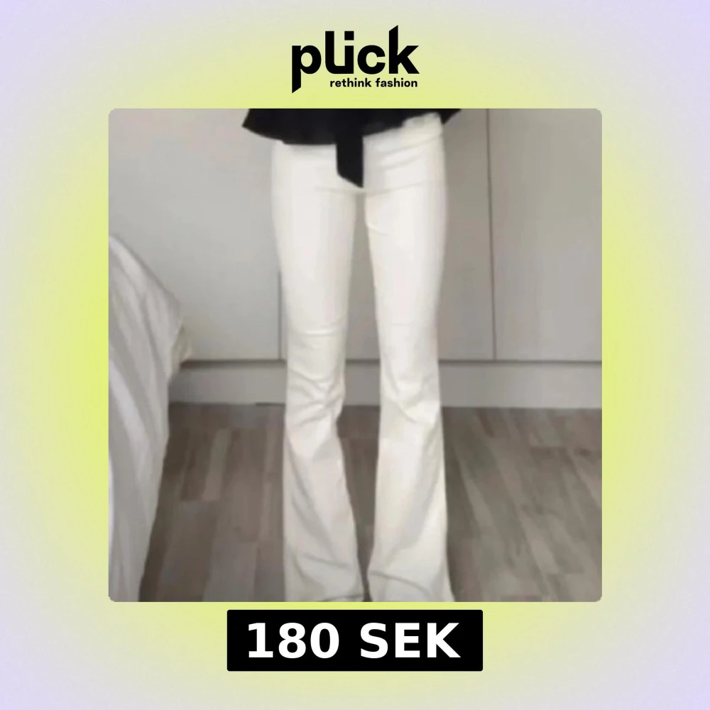 Säljer ett par vita bootcut jeans med låg midja. I strl 170 men sitter som vanliga XS. För långa så uppklippta så de passar mig som är 164.