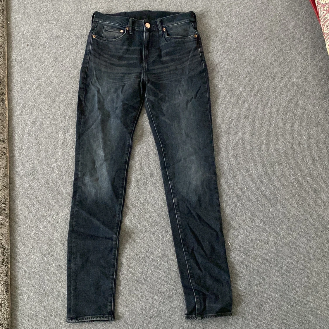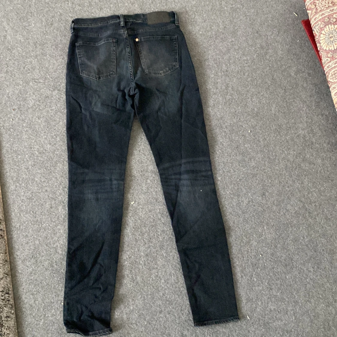 Snygga svarta skinny jeans från H&M i storlek 29. Modellen är smal med klassisk femficksdesign och knappstängning. Jeansen är tillverkade i stretchig denim med 99% bomull och 1% elastan för en bekväm passform. Perfekta för dig som gillar en tight look.
