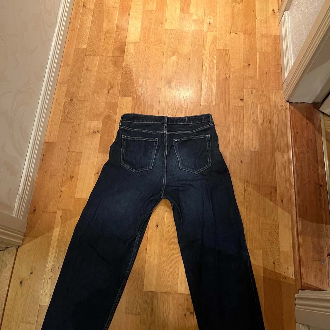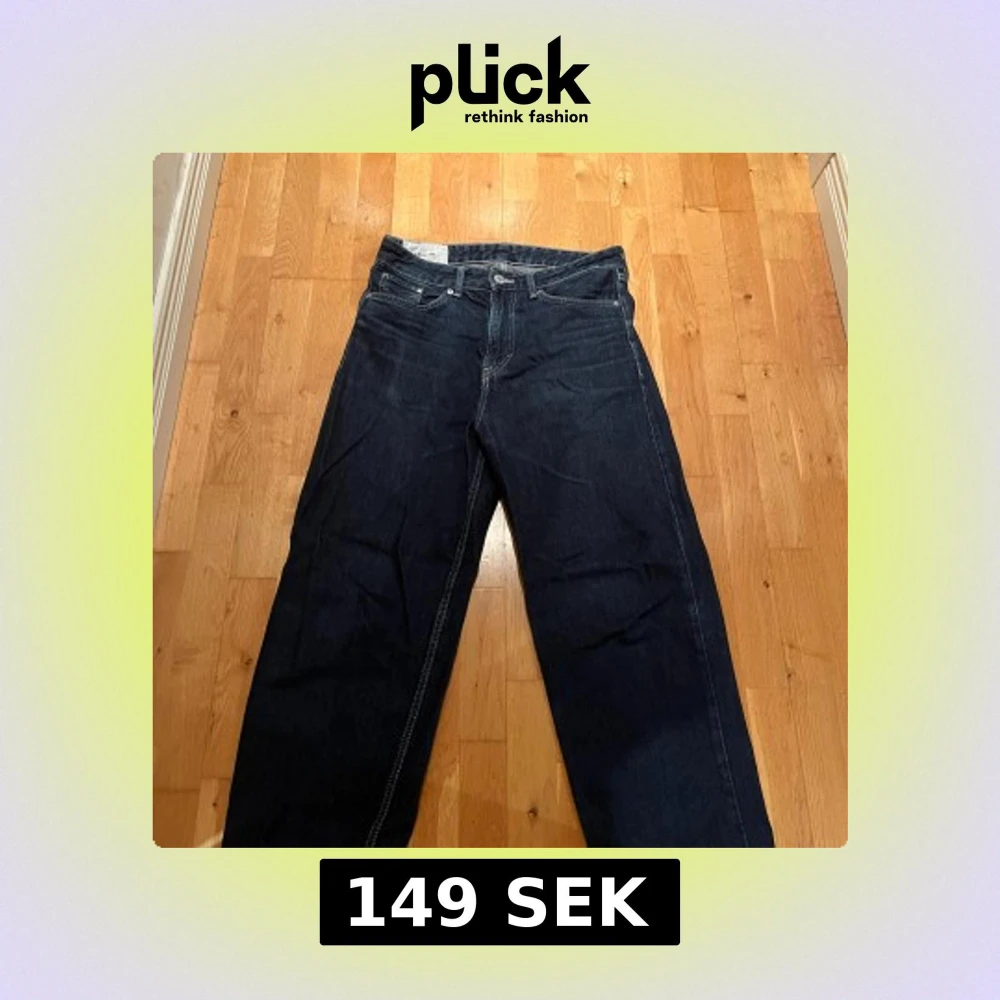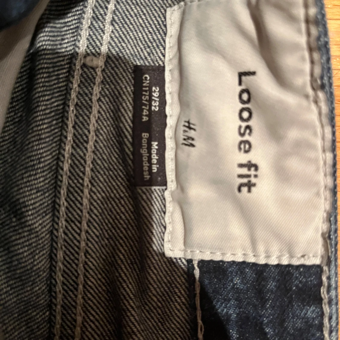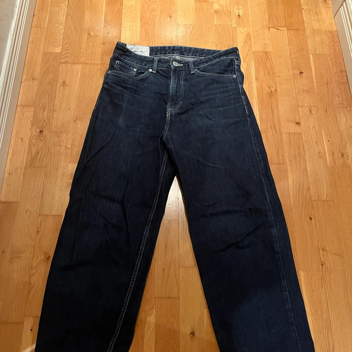 Mörkblå jeans från H&M i loose fit-modell. Klassisk femficksdesign med raka ben och kontrastsömmar. Tillverkade i bomull för en skön och avslappnad känsla. Perfekta för dig som gillar en lite mer baggy stil.