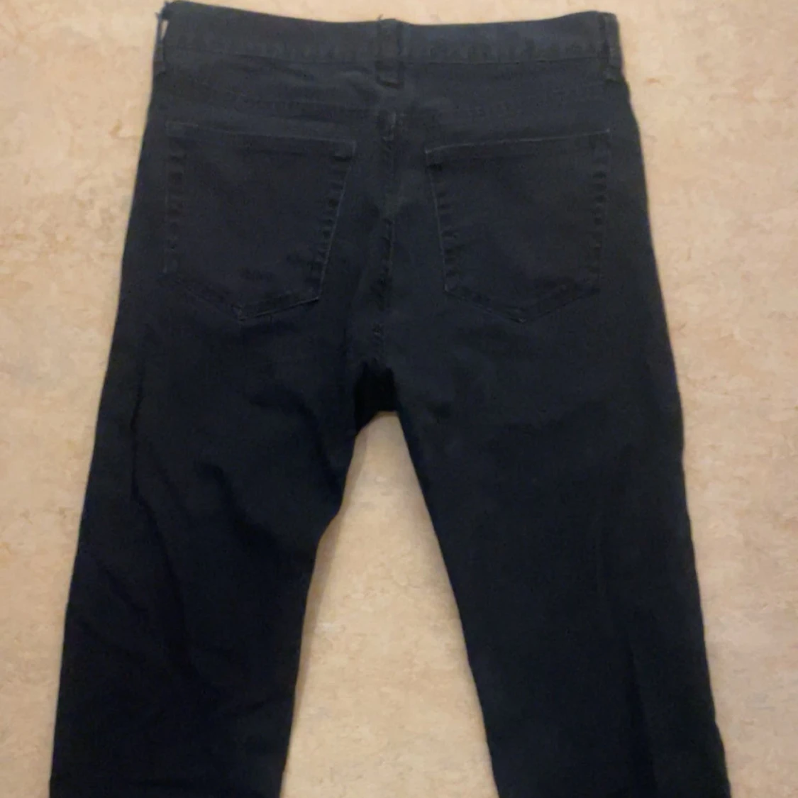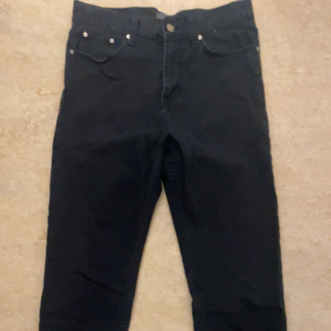 Svarta jeansbyxor med klassisk femficksdesign och raka ben. Byxorna har knapp och dragkedja framtill samt bälteshällor i midjan. Perfekta för en stilren och enkel look. ABS! Pris går att diskutera. (STORLEK 30/30)