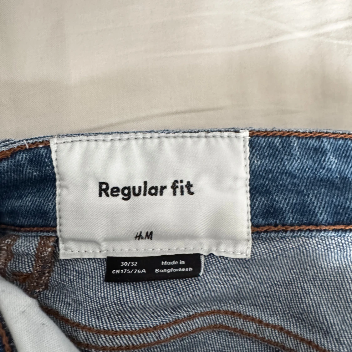 Säljer ett par klassiska blå jeans från H&M i regular fit. De har en rak passform och är tillverkade i mjukt denimtyg med snygga kontrastsömmar. Perfekta för dig som gillar en enkel och stilren look.