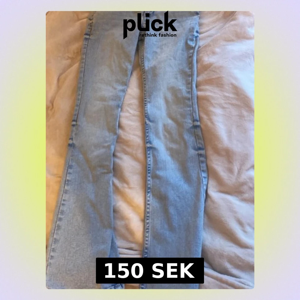 Ljusblå bootcut jeans från H&M med klassisk femficksdesign och normal passform. Jeansen har en snygg tvättad look och är tillverkade i bomullsmix för en bekväm känsla.