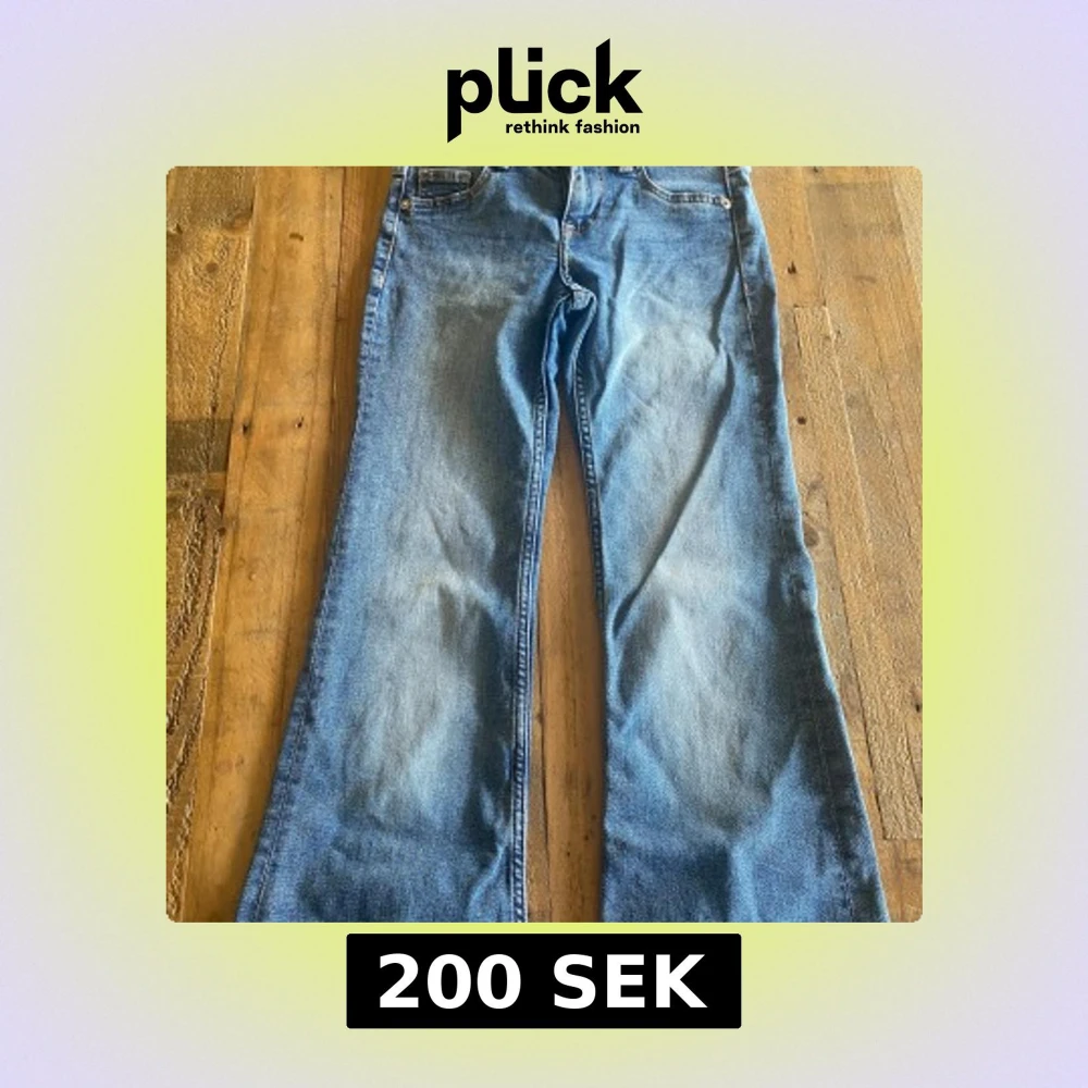 Säljer ett par klassiska blå jeans med bootcut-modell och utsvängda ben. Har knappt aldrig använt då dem e lite stora på mig men annars jätte fina💕skriv för fler bilder💕